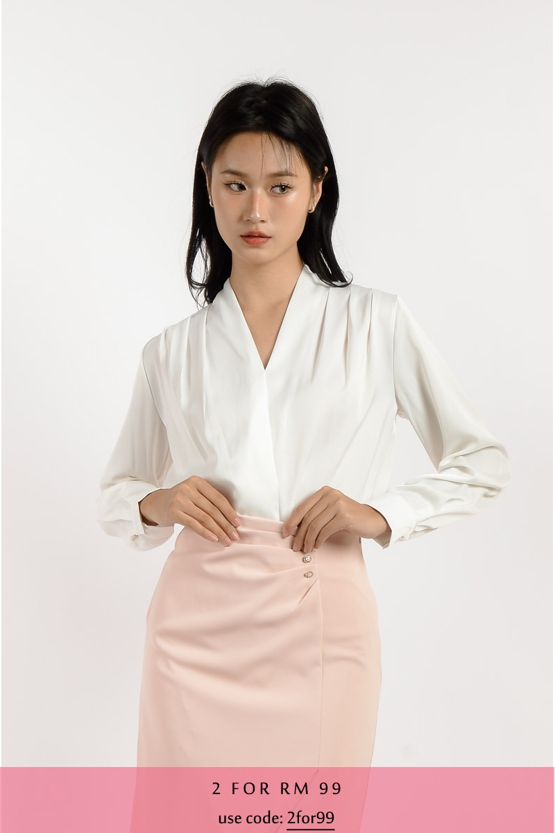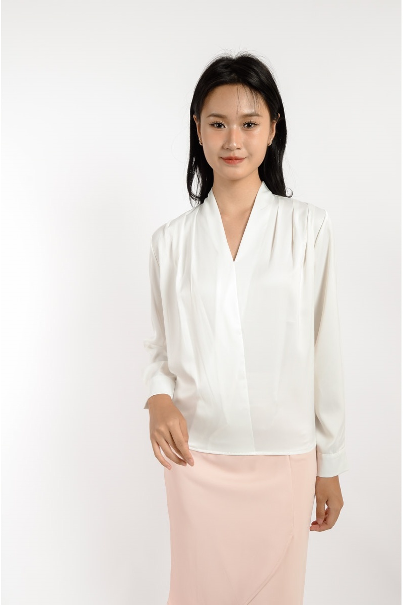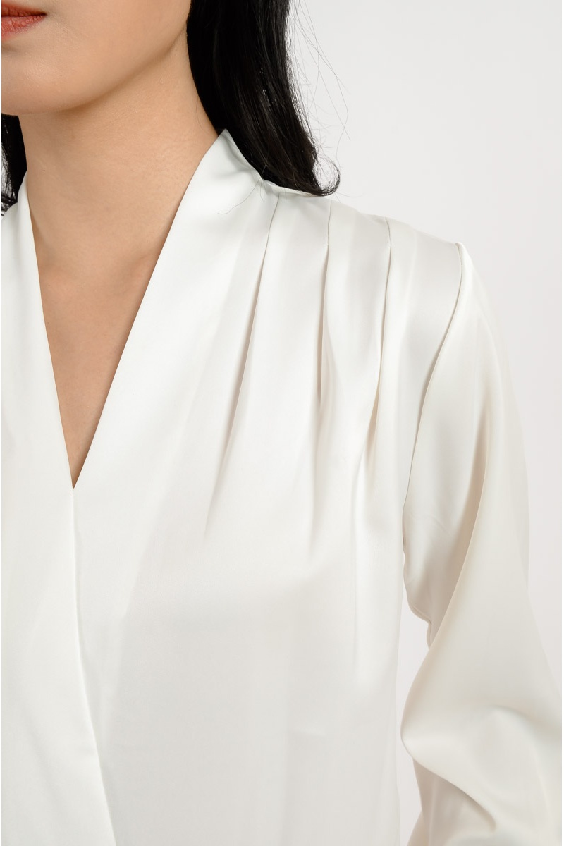 Ada V Neck Long Sleeve Top - White