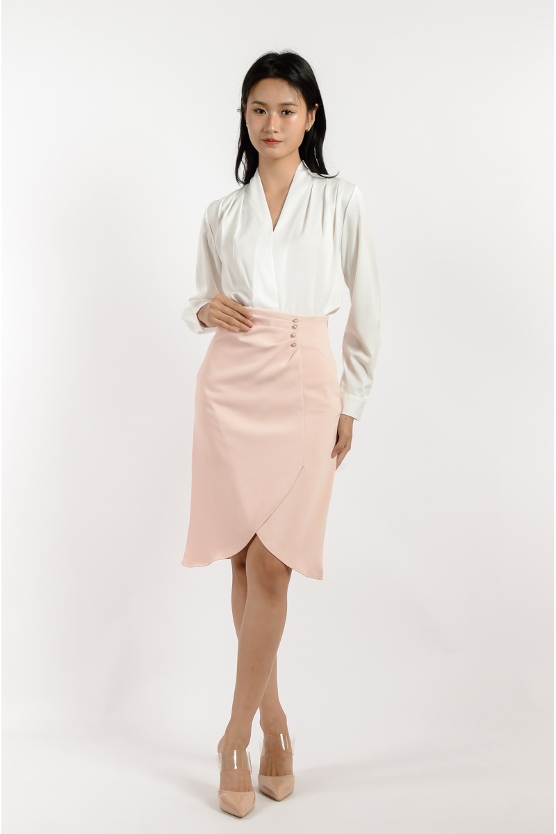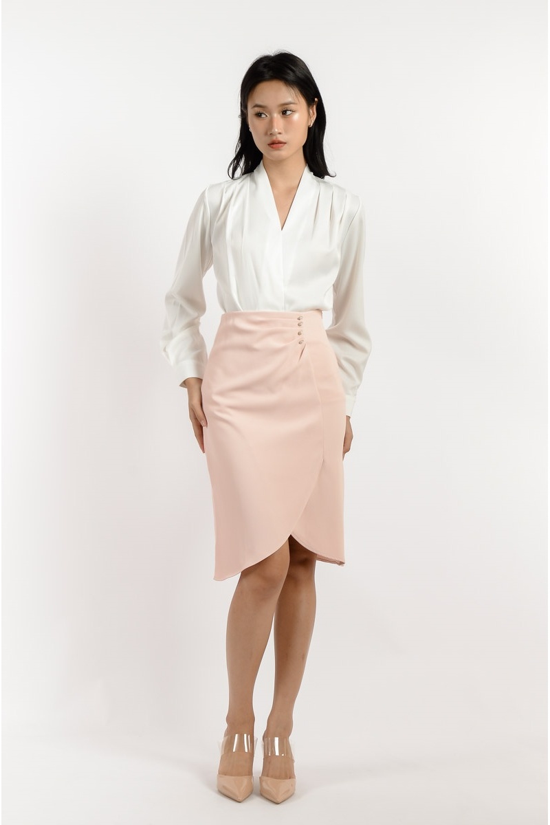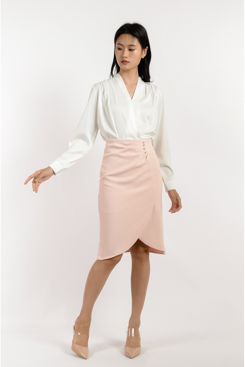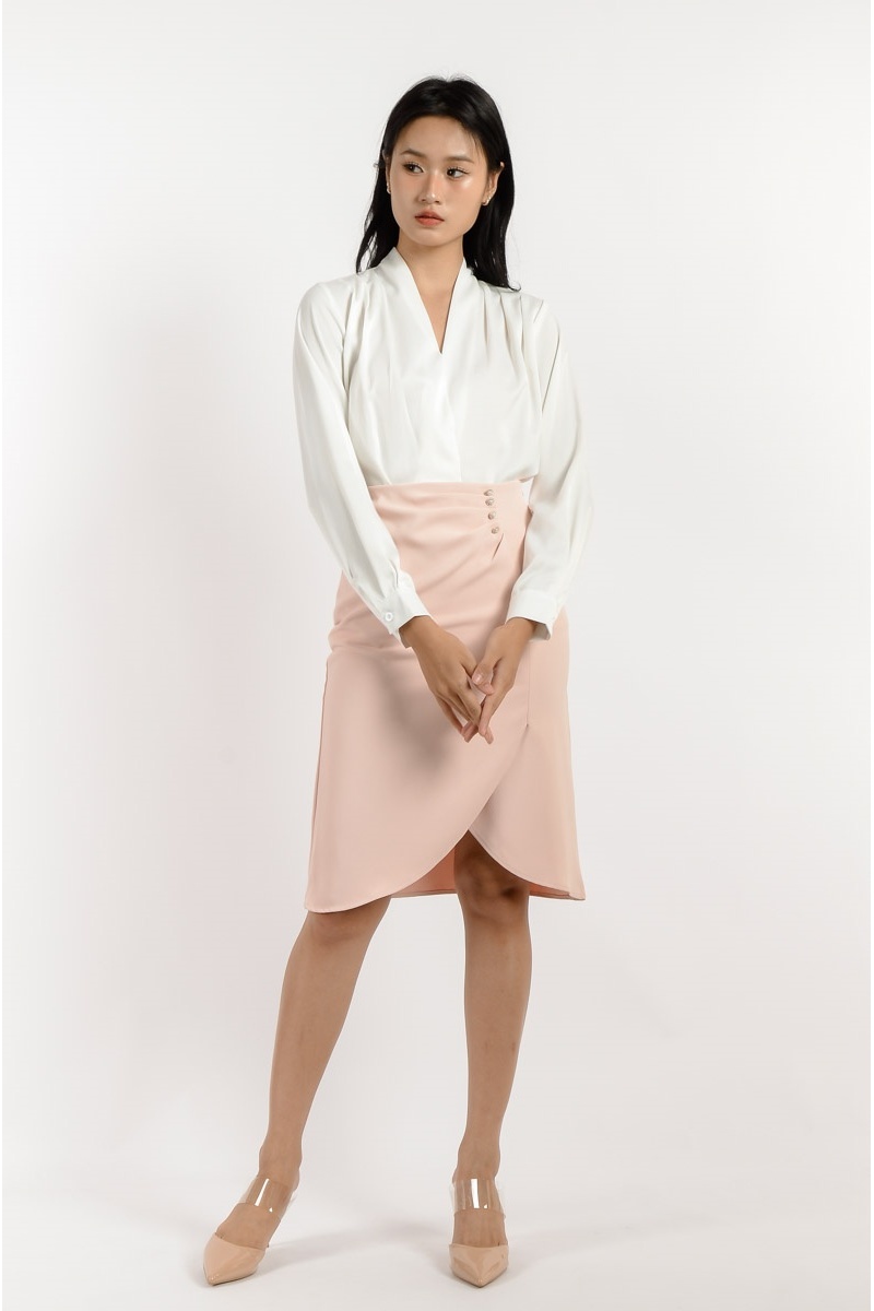 Ada V Neck Long Sleeve Top - White