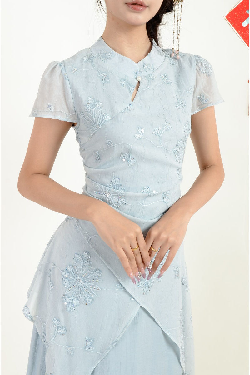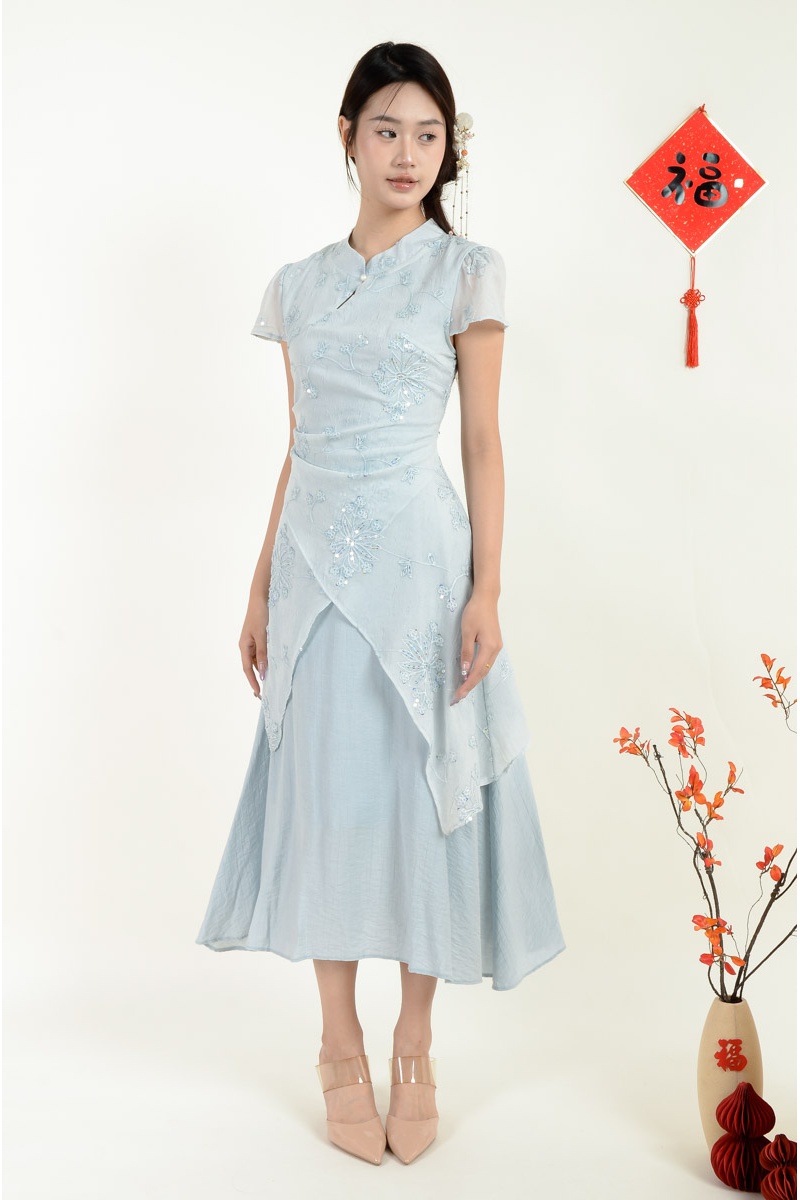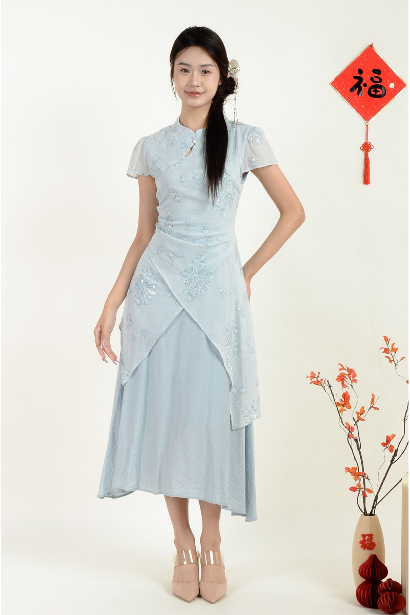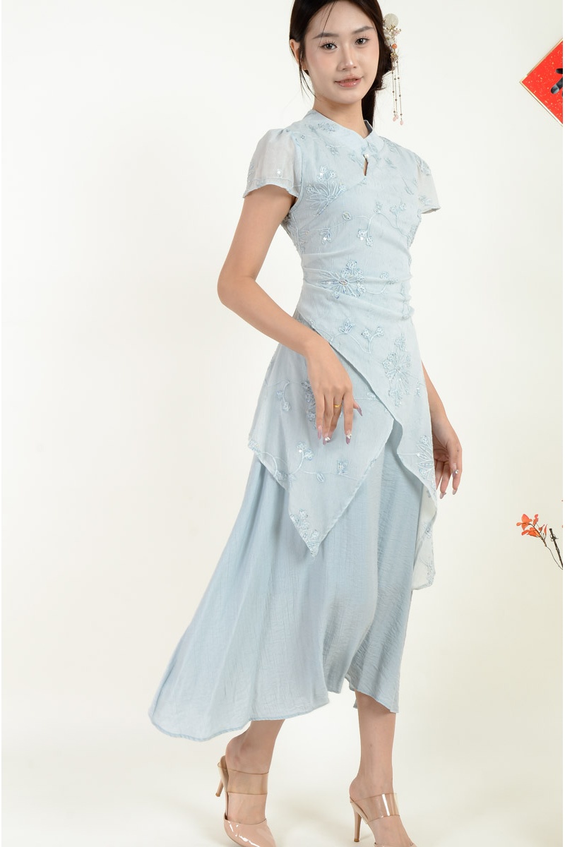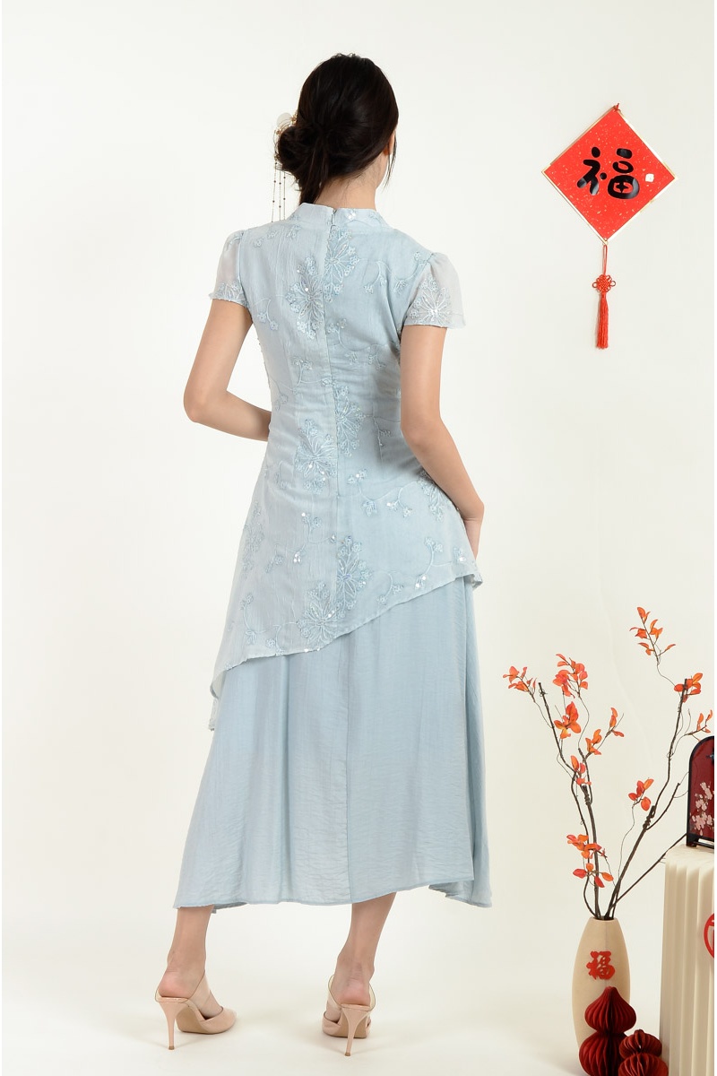 Adley Cheongsam Dress - Ash Blue