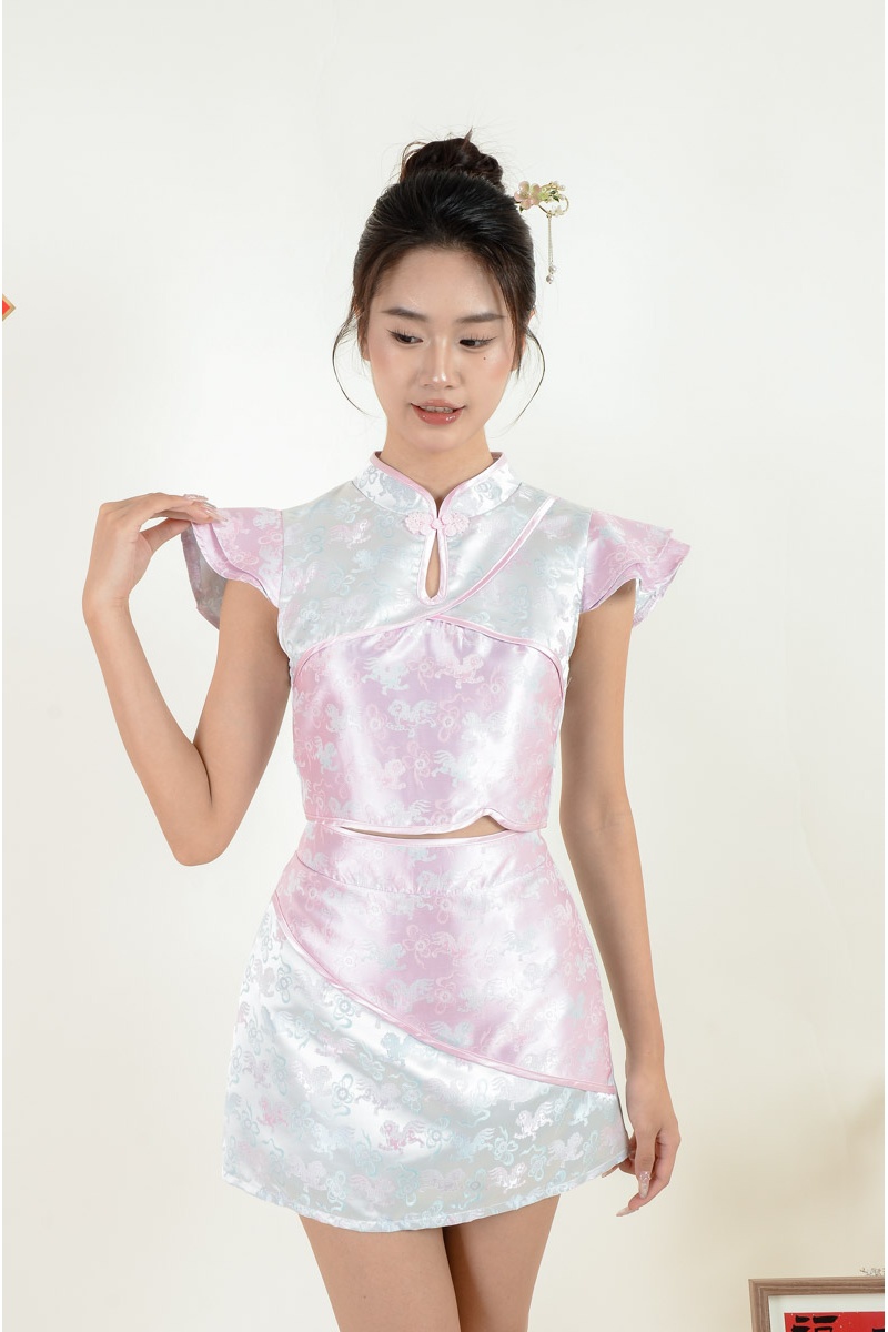 Aileen Pastel Cheongsam Setwear - Purple
