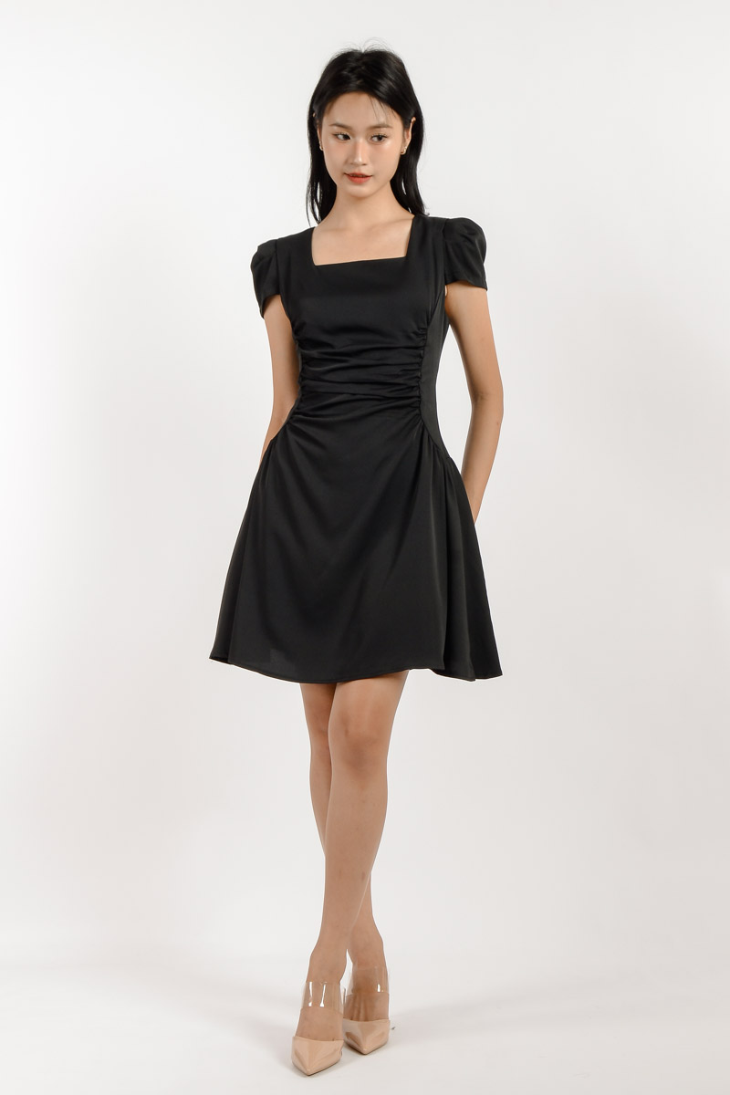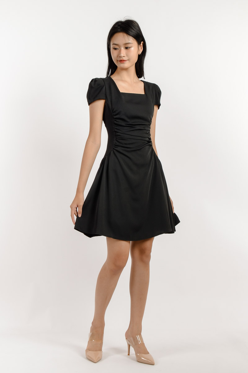 Alana Square Neck Mini Dress - Black