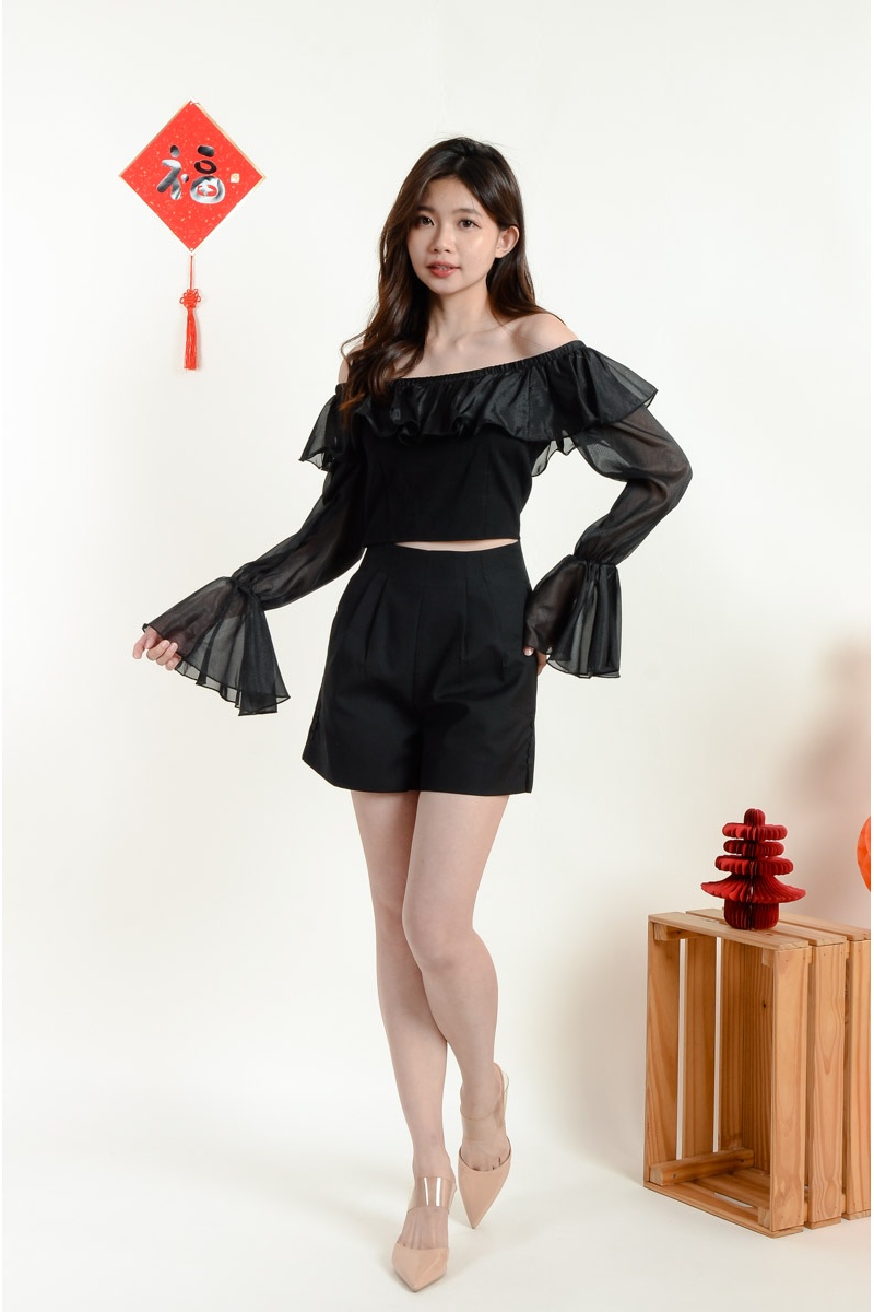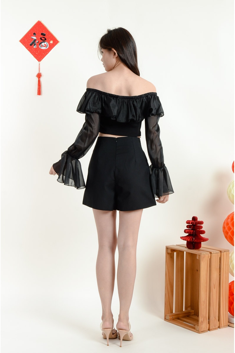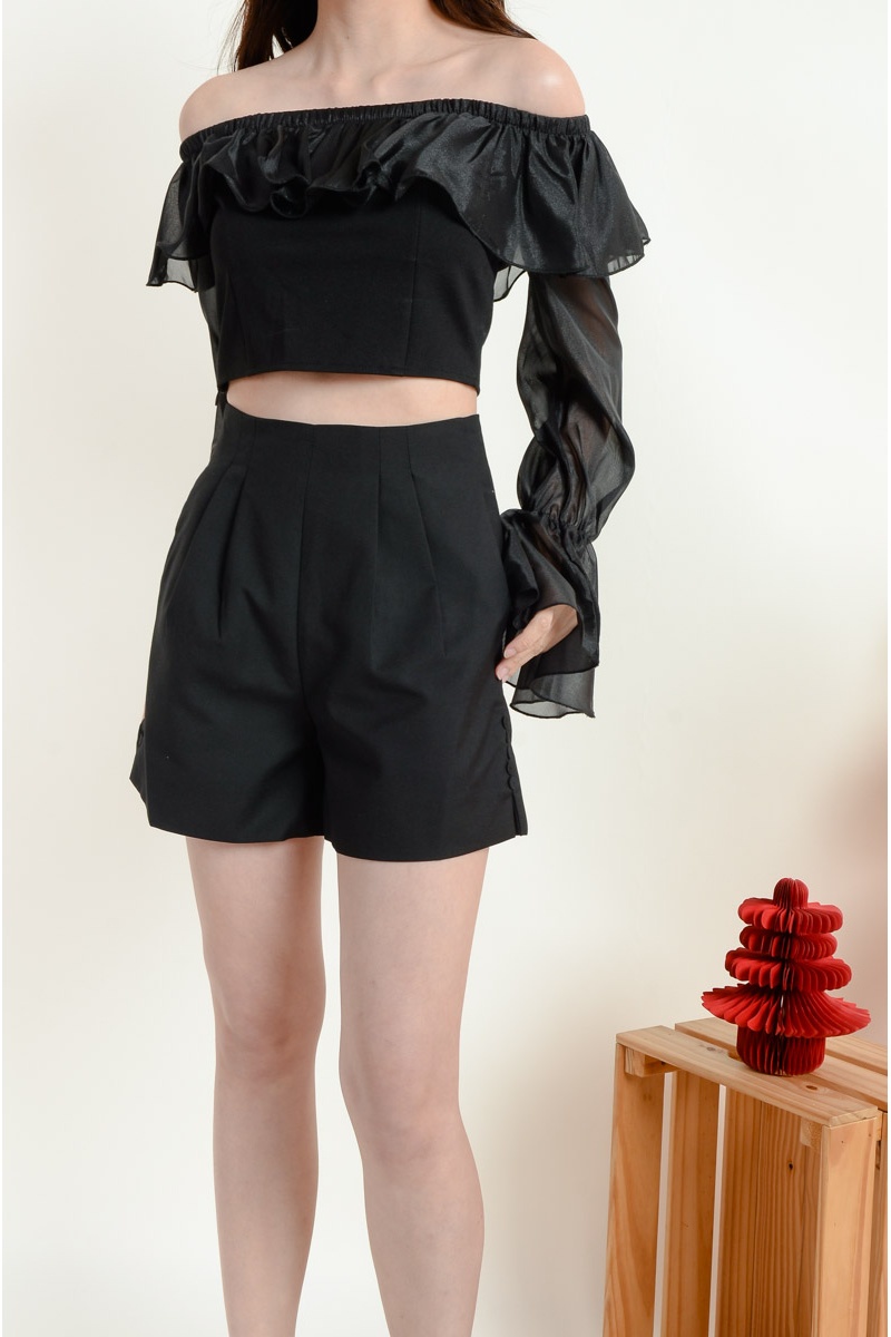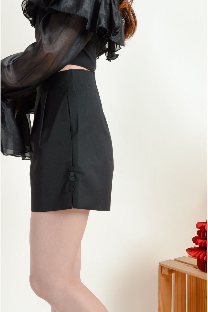 Alayah High Waist Shorts with Side Slit - Black