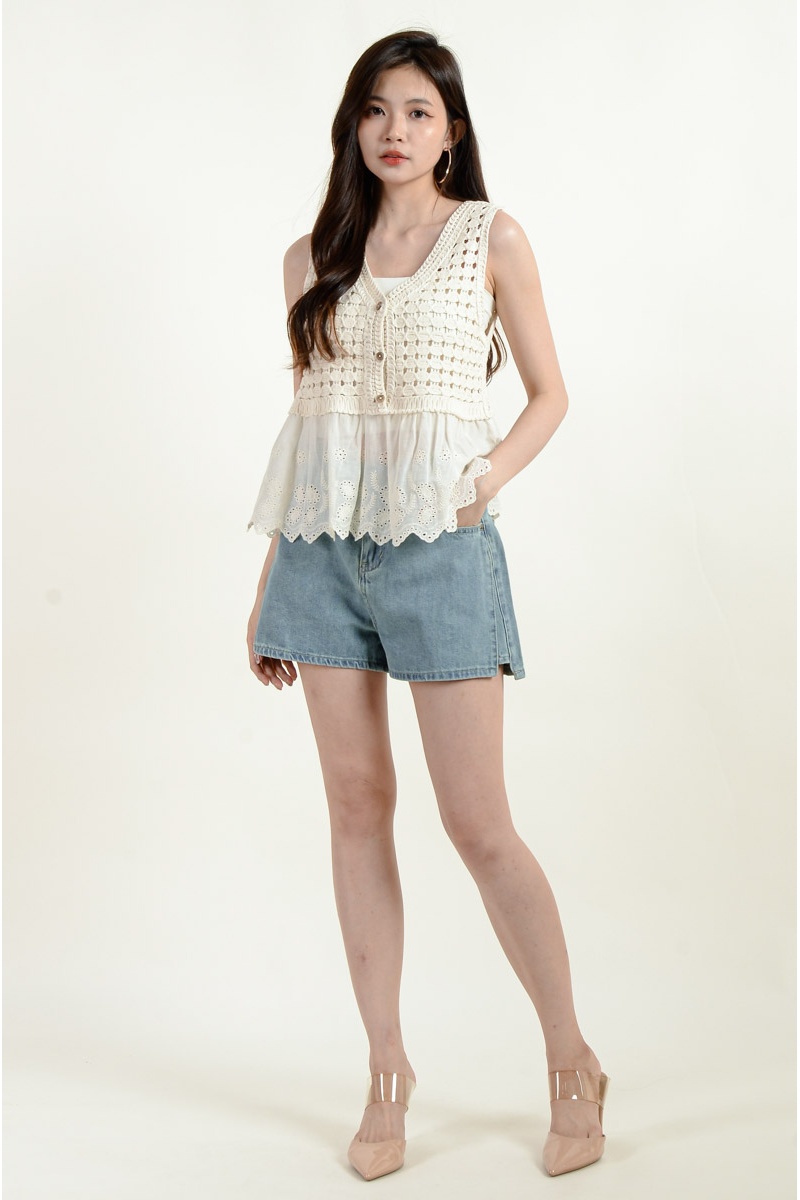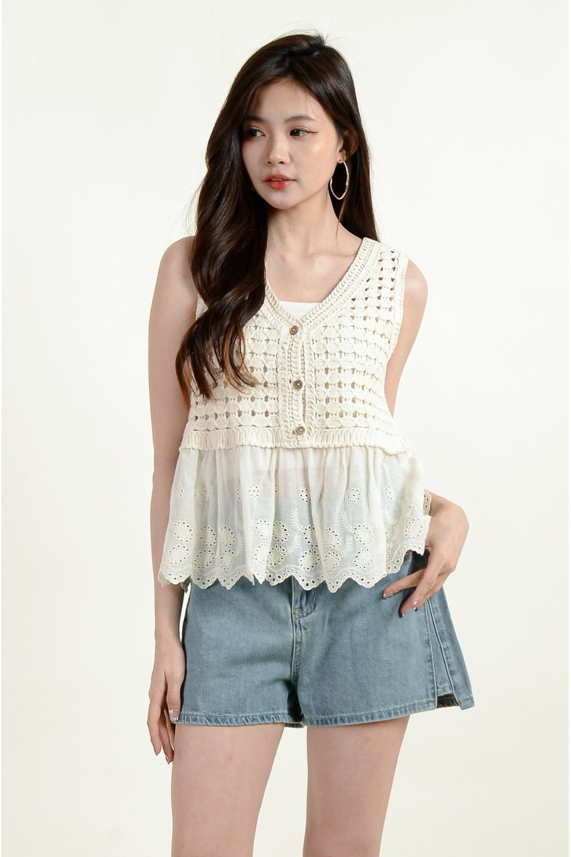 Alia Crochet Layered Top - Beige