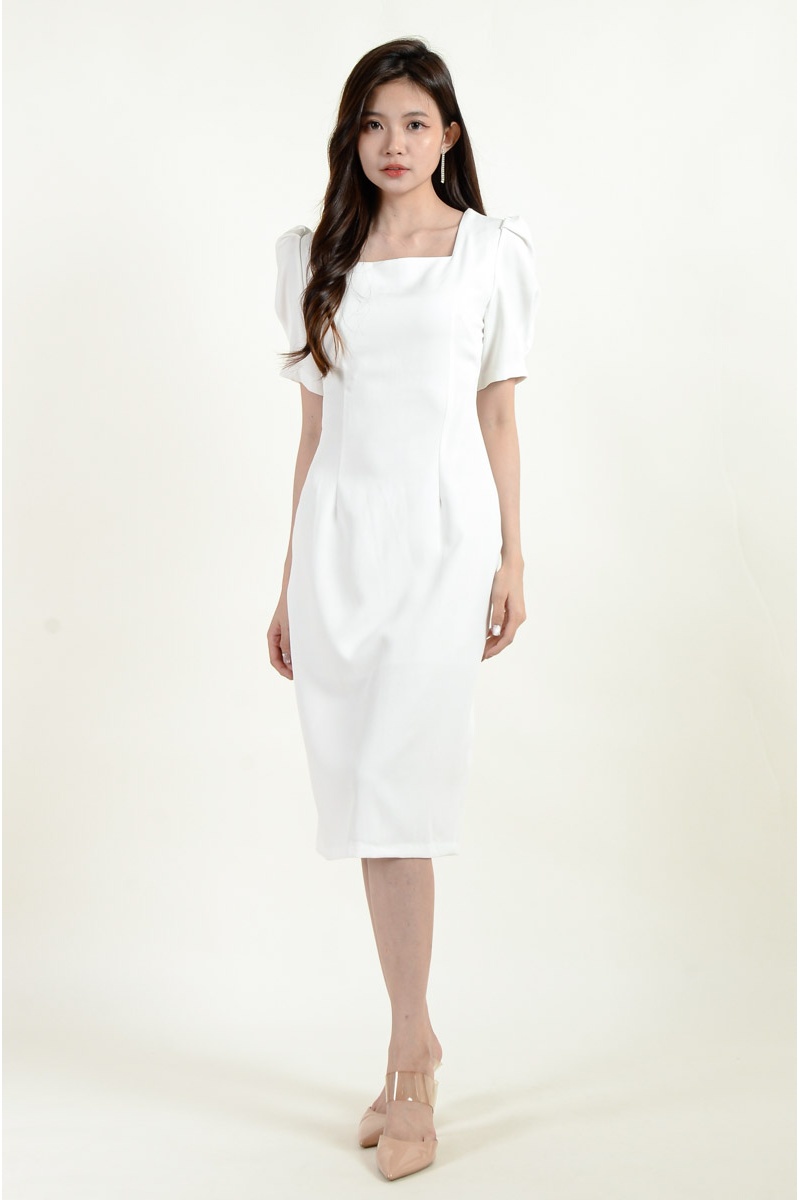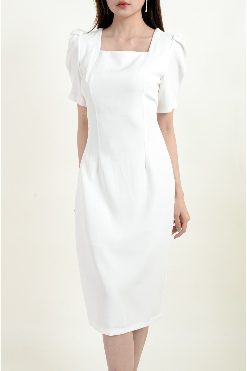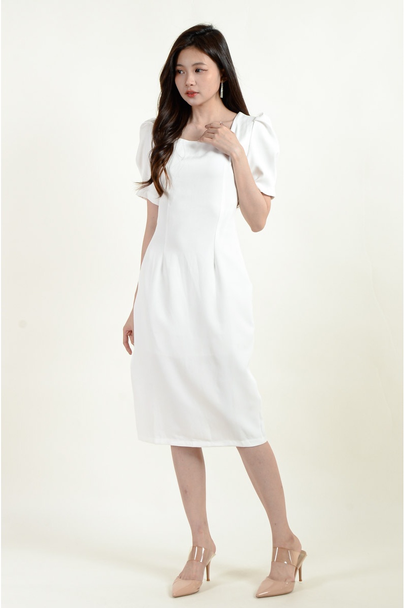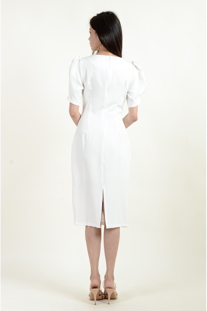 Ashly Puff Sleeve Dress - White
