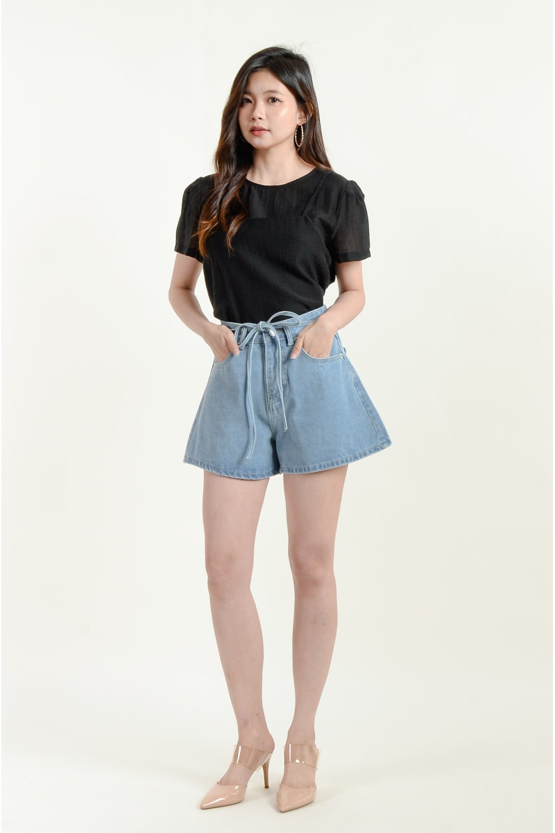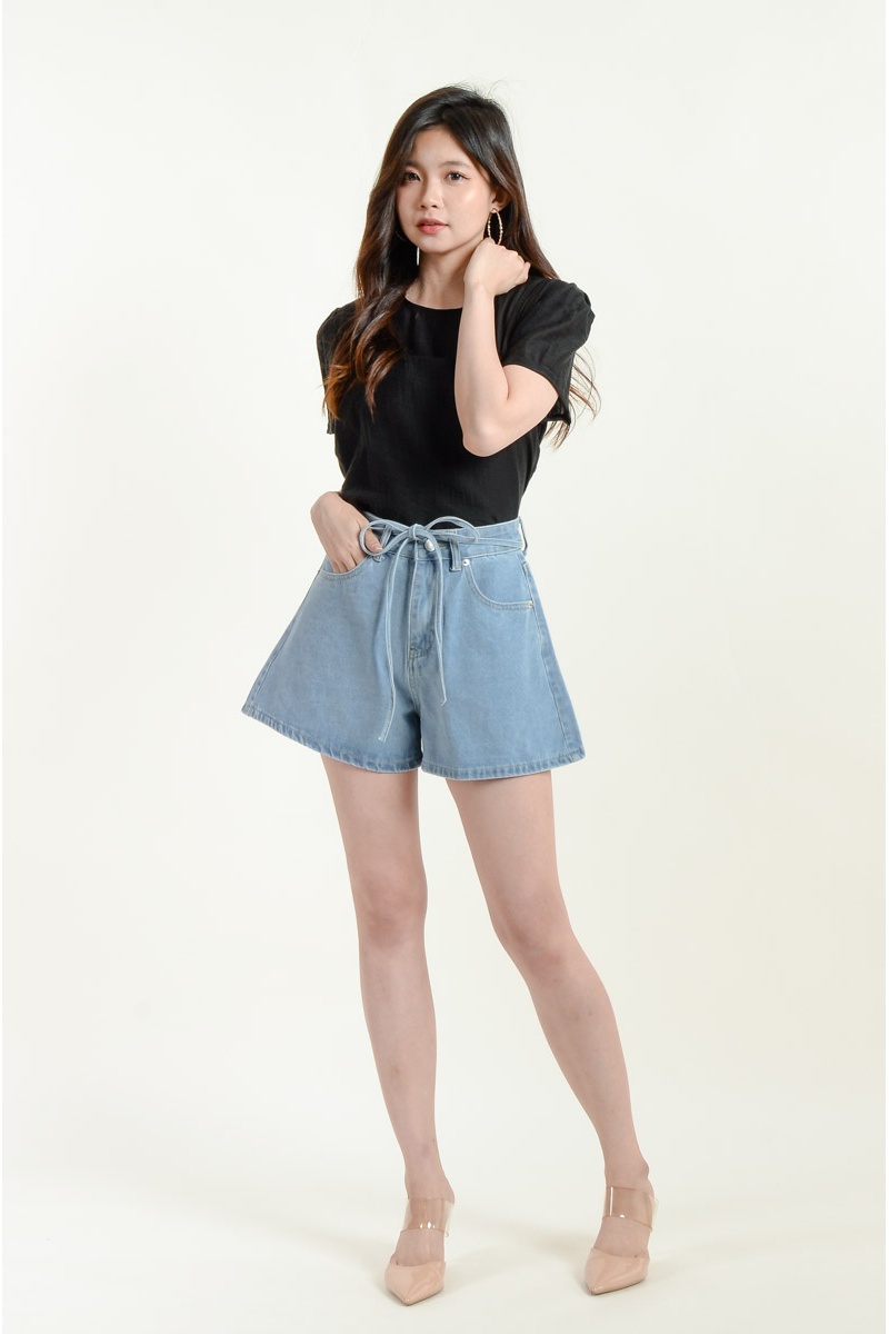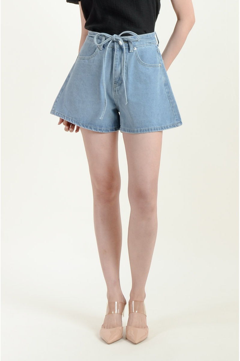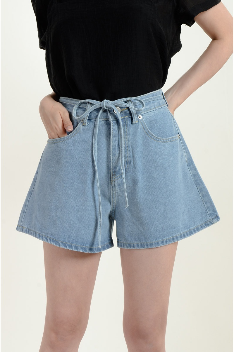 Aylin Bow Denim Shorts - Light Blue