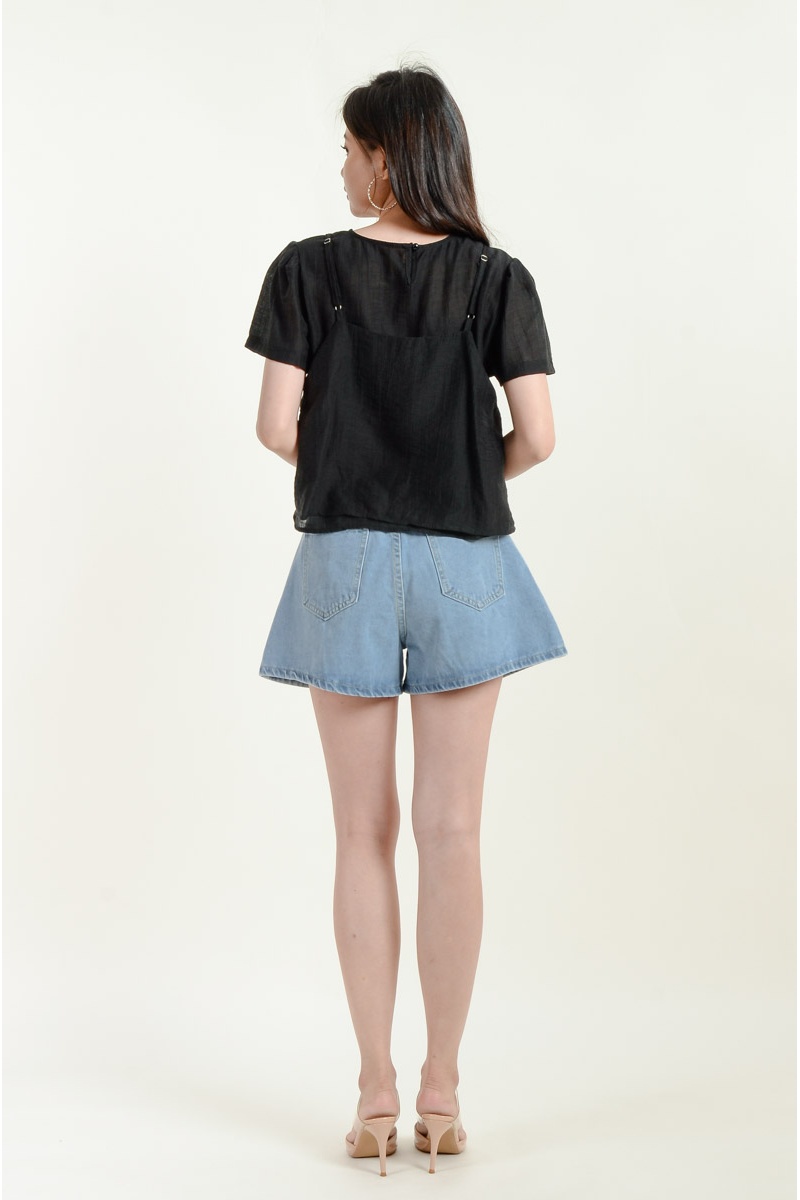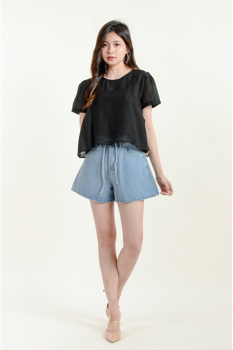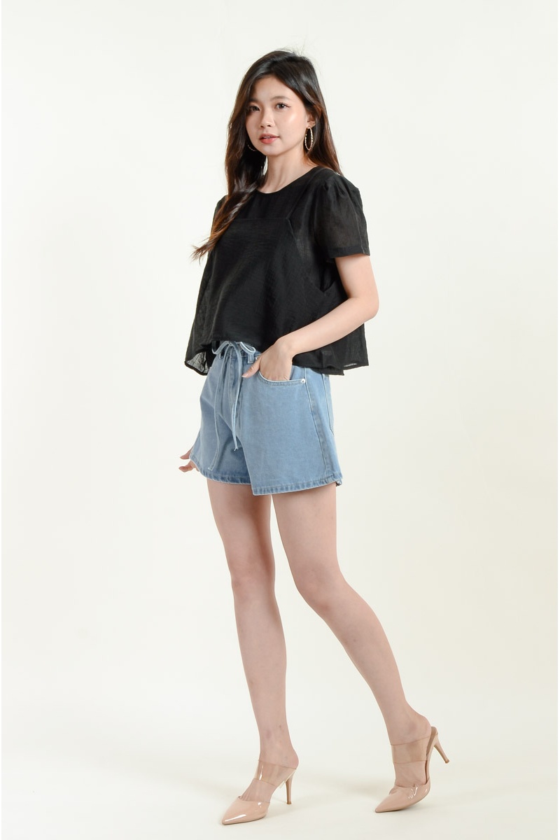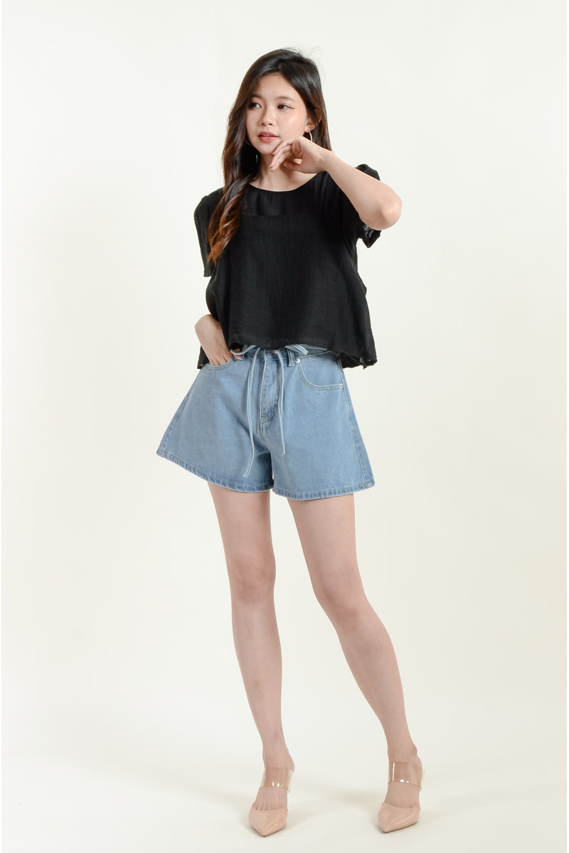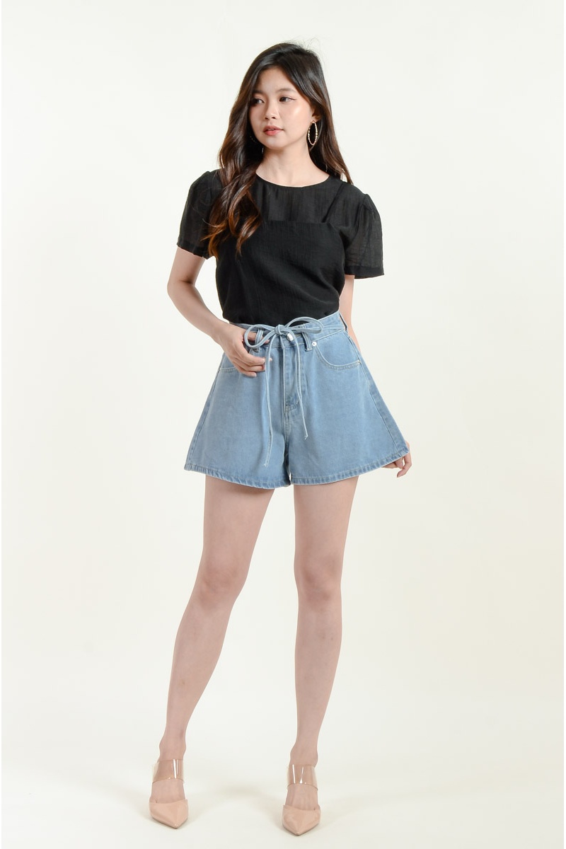 Aylin Bow Denim Shorts - Light Blue