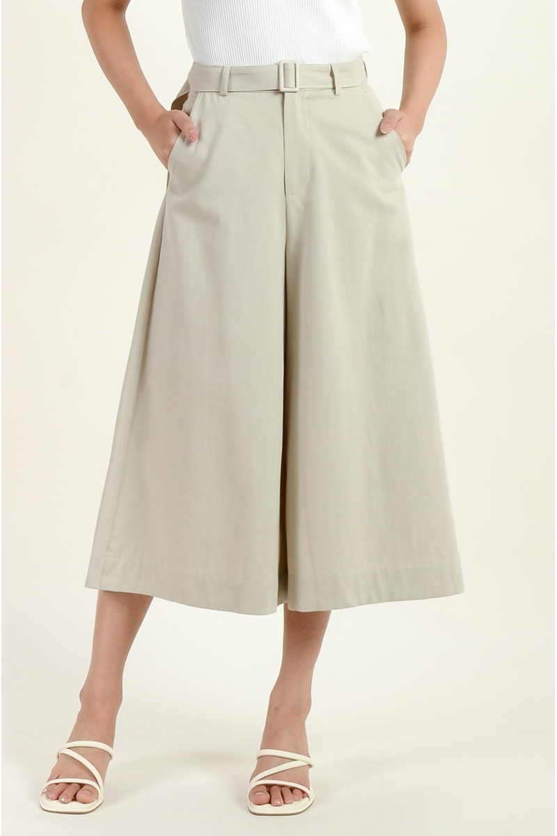 Bristol Midi Palazzo Skirt Pants - Khaki