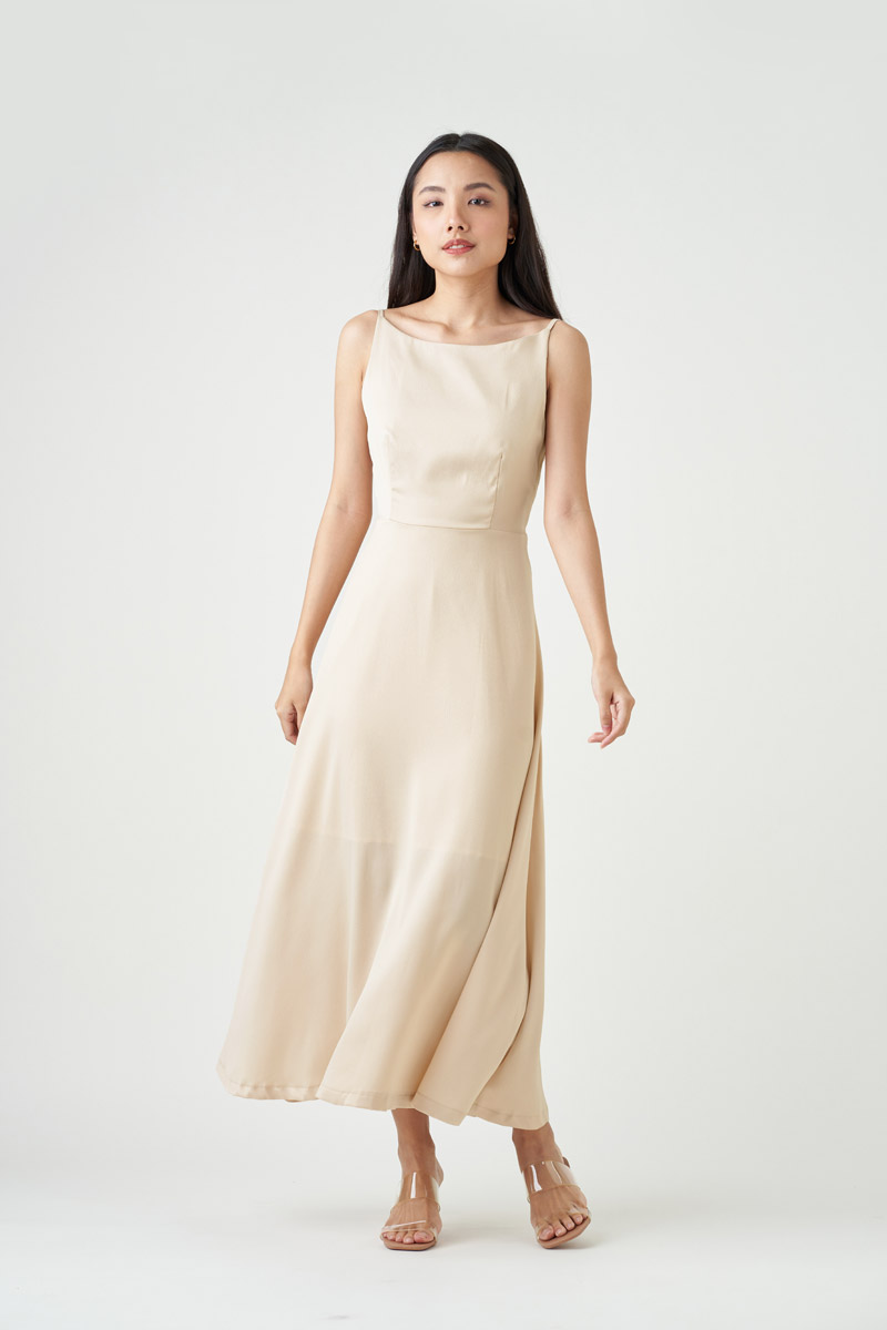 Charlize Satin Maxi Dress - Champagne
