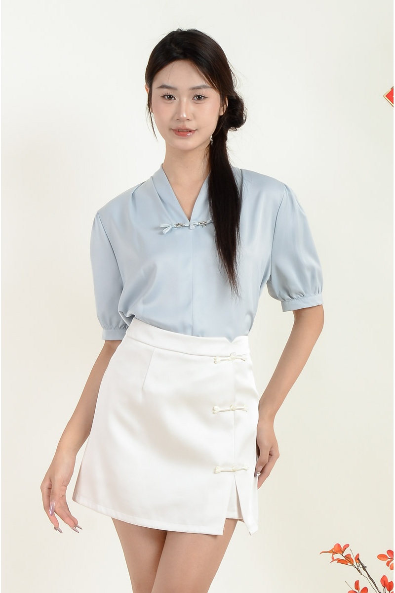 Elodie Mandarin Collar Top - Blue