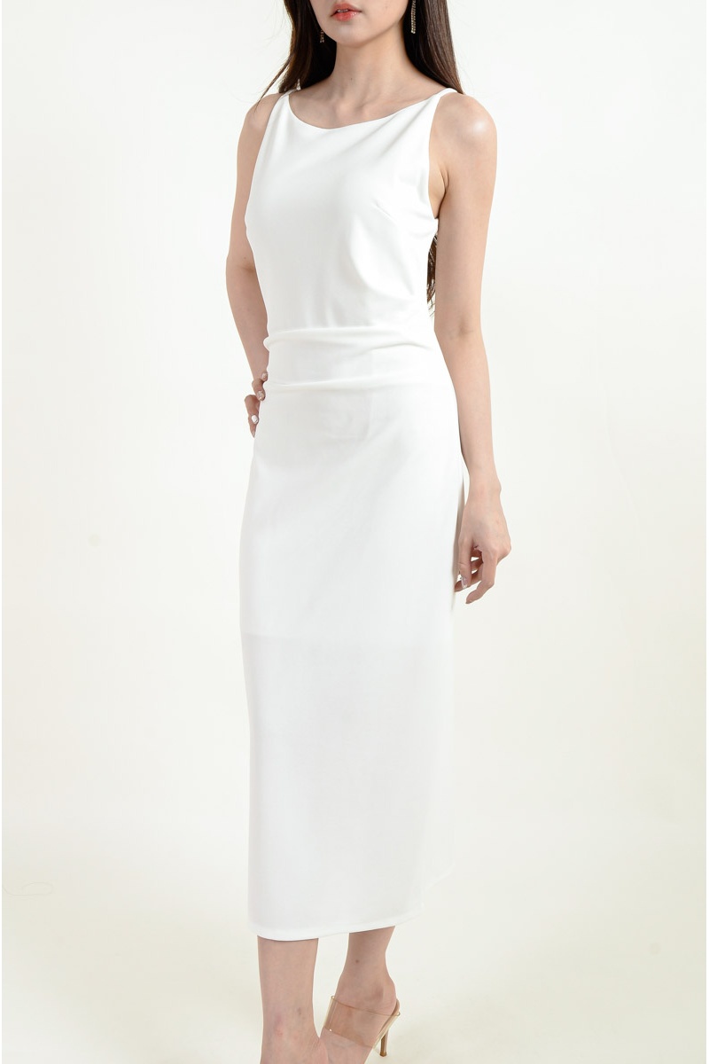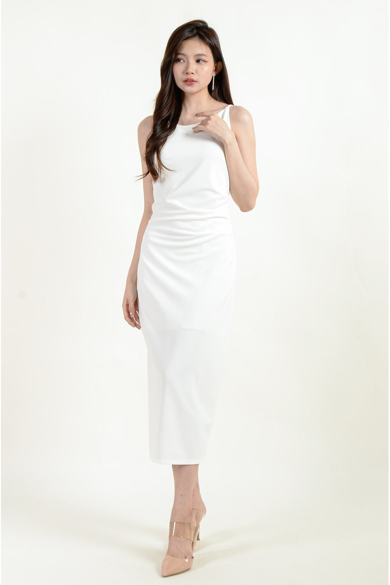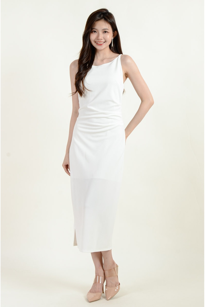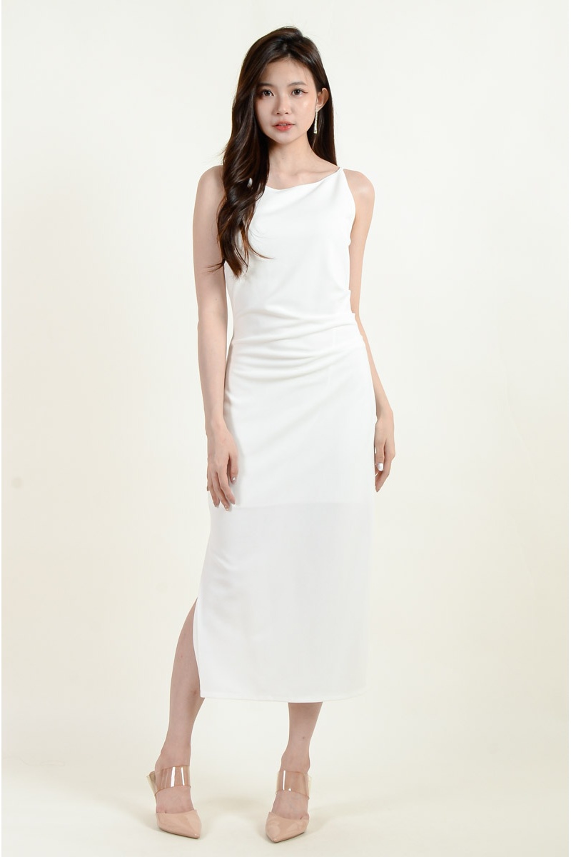 [BackOrder ETA 30 Apr] Zahra Side Slit Ruched Dress - White