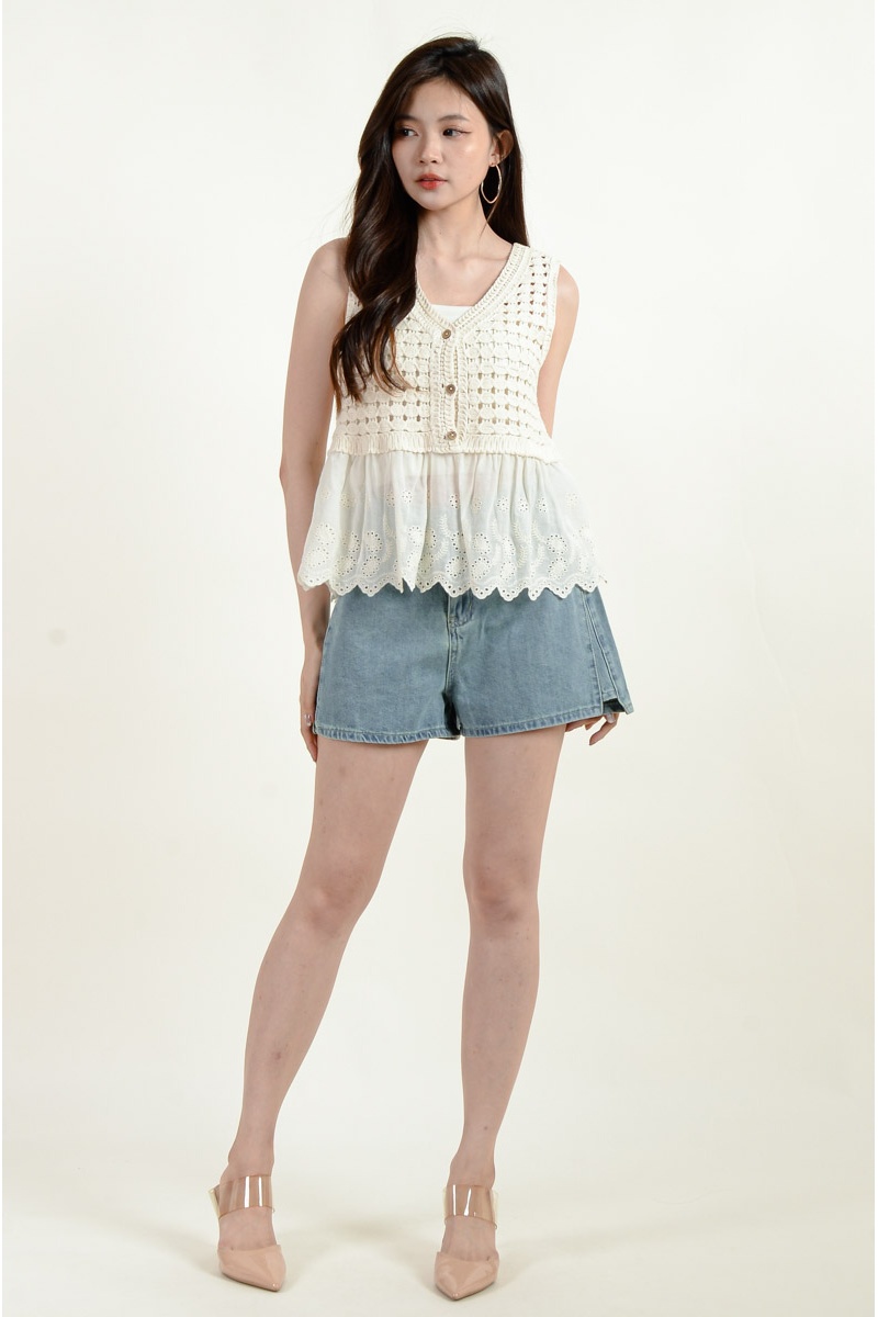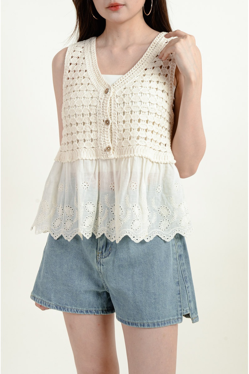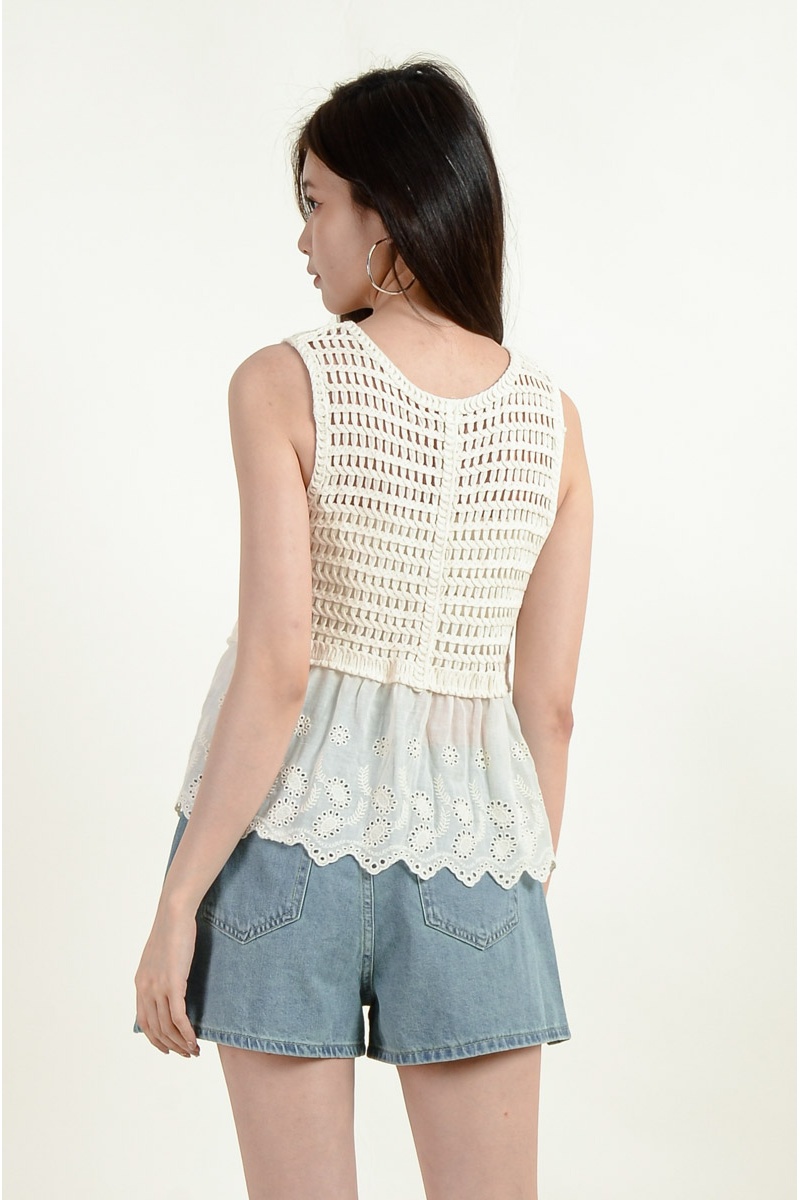 [BackOrder ETA 30 Apr] Alia Crochet Layered Top - Beige