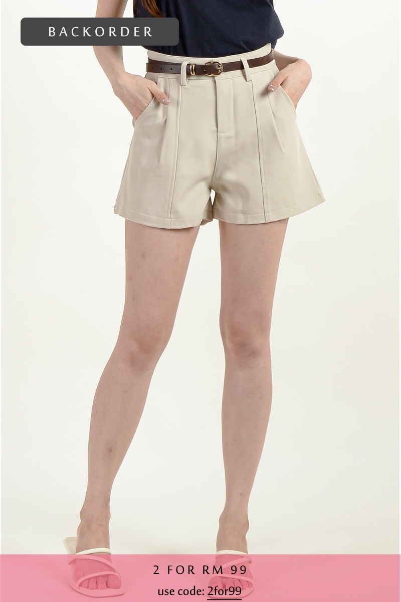 [BackOrder ETA 30 Apr] Elliott Belted Shorts - Beige