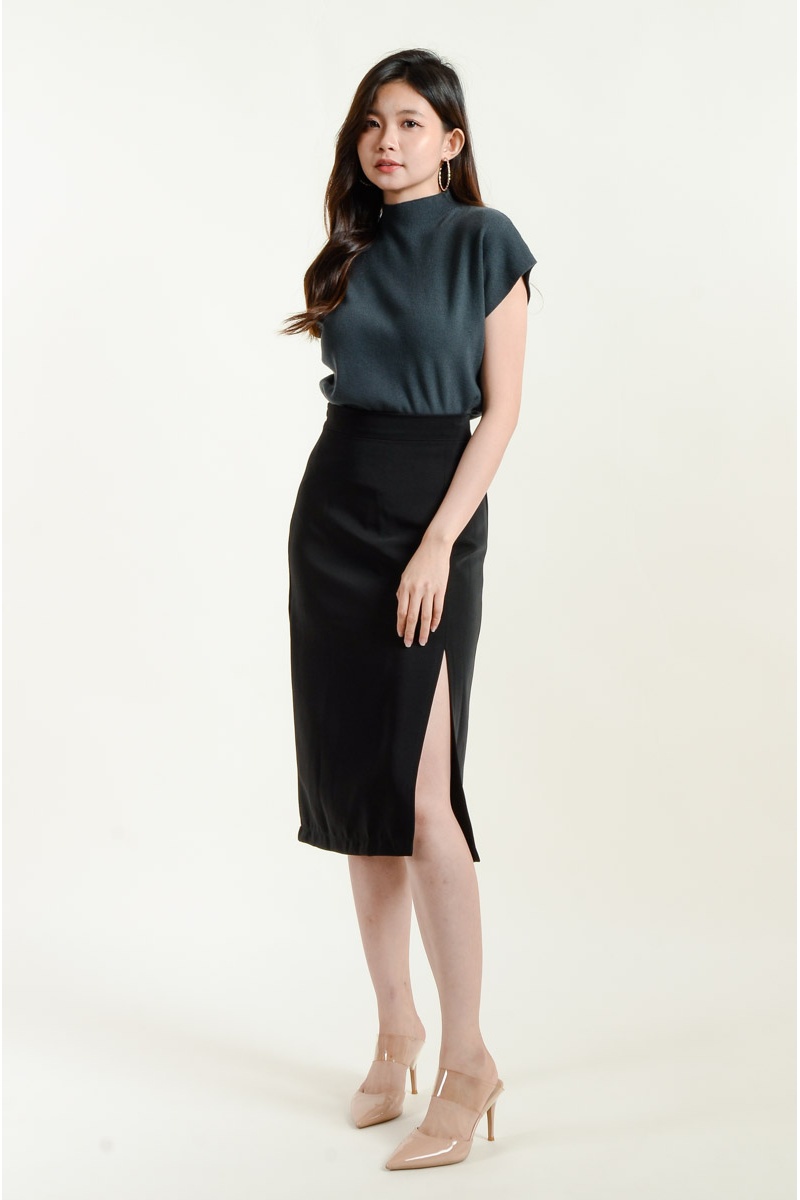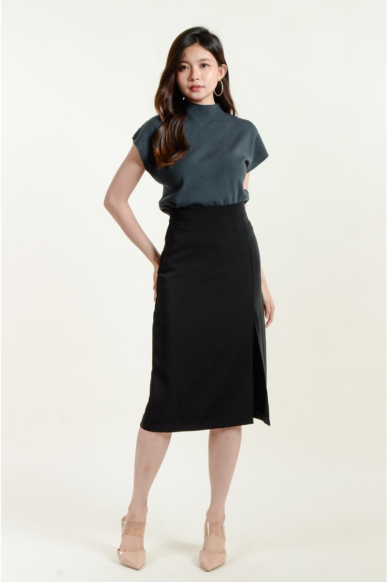 Emely A-Line Slit Skirt - Midi