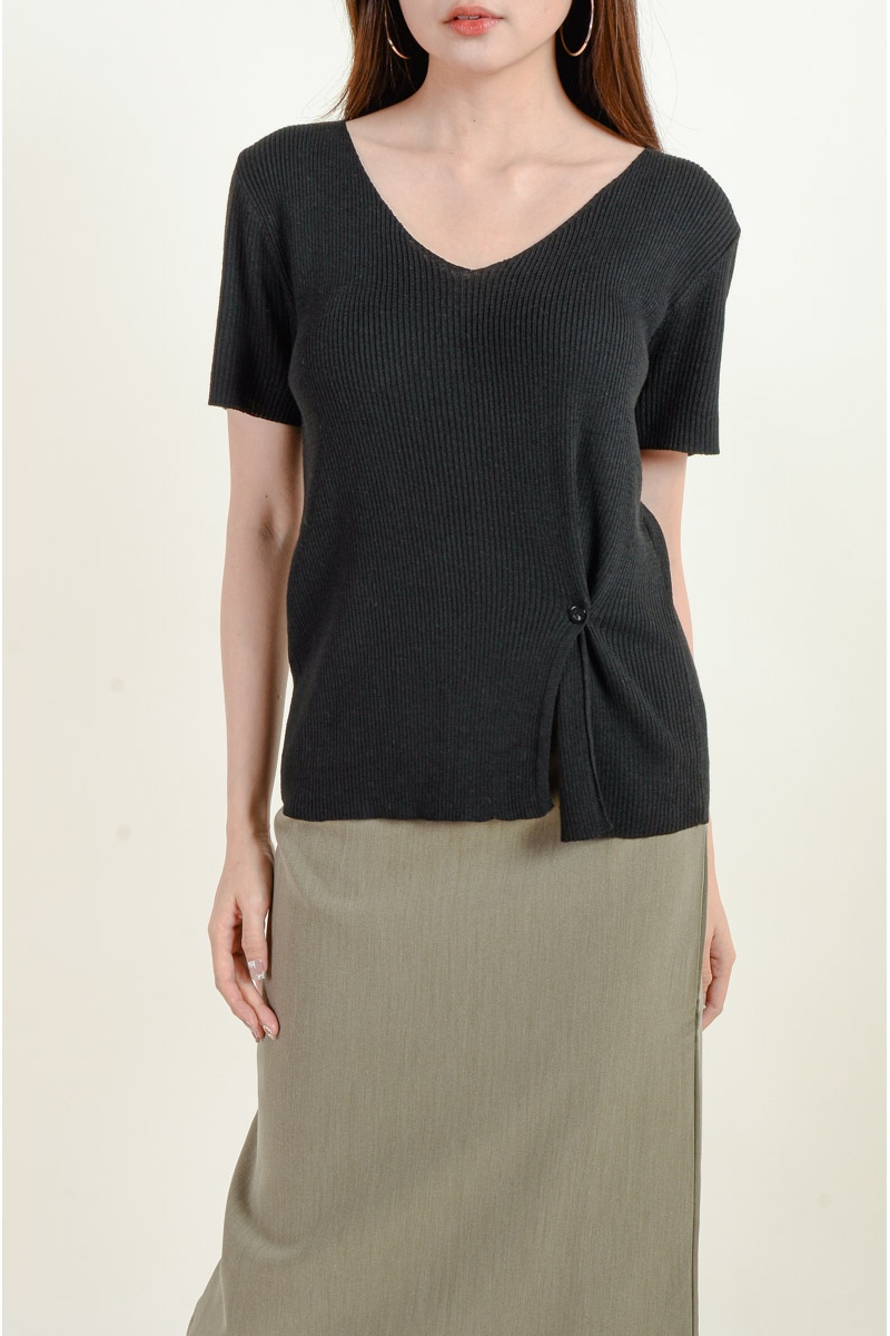 Eve Twisted Two-Way Knitted Top - Black