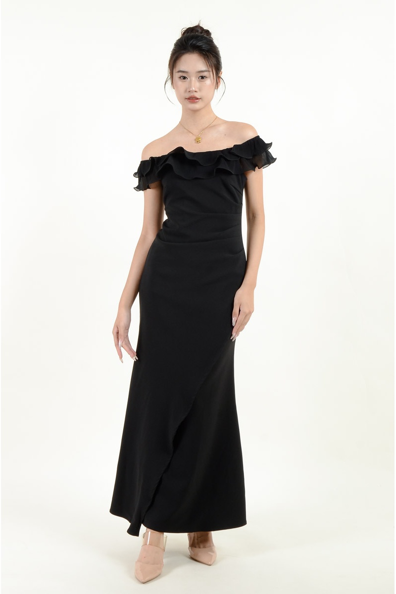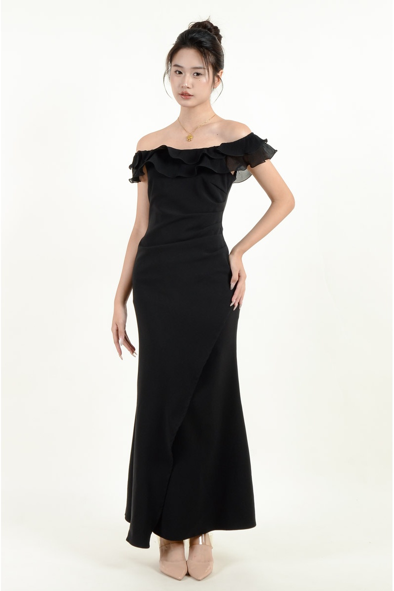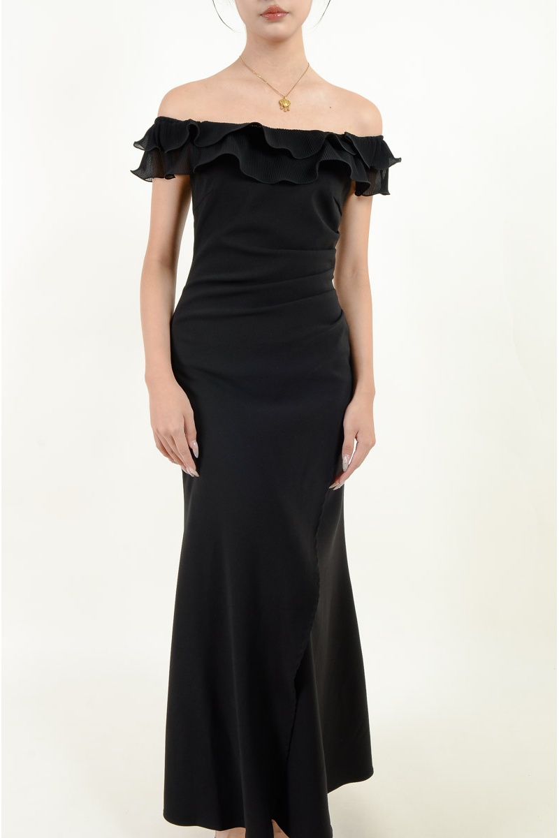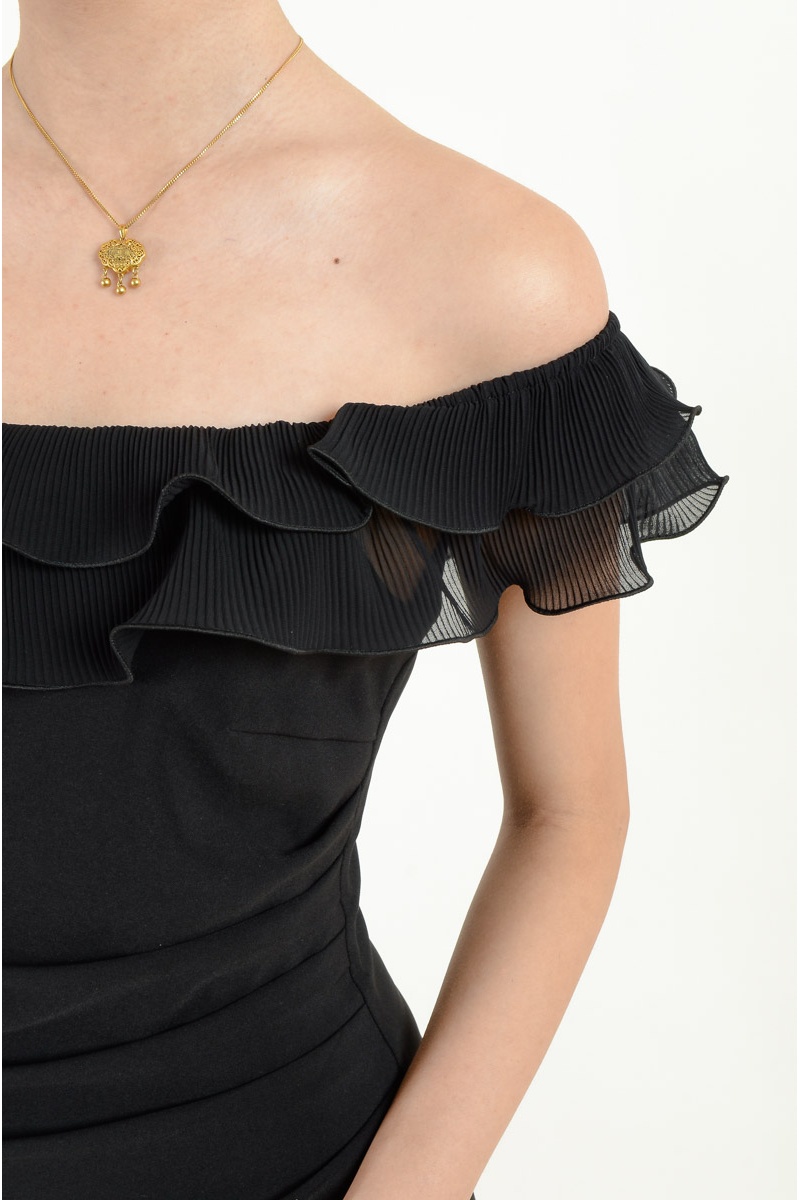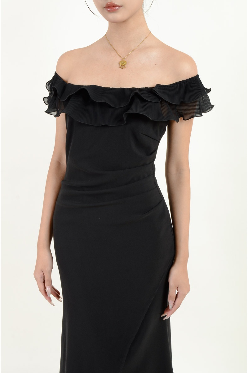 Fallon Ruffle Off Shoulder Dress - Black