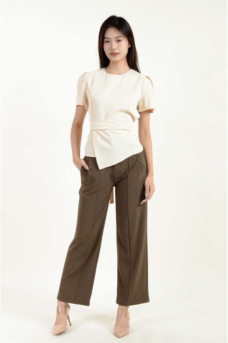 [BackOrder ETA 30 Apr] Gloria Peplum Top - Beige
