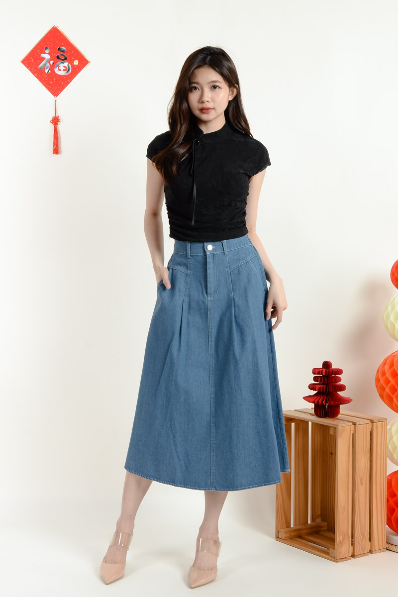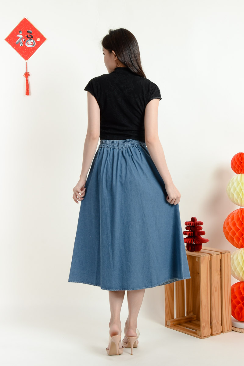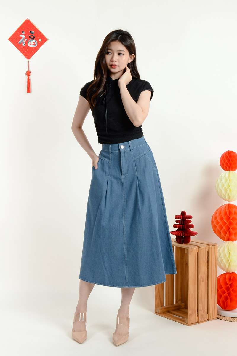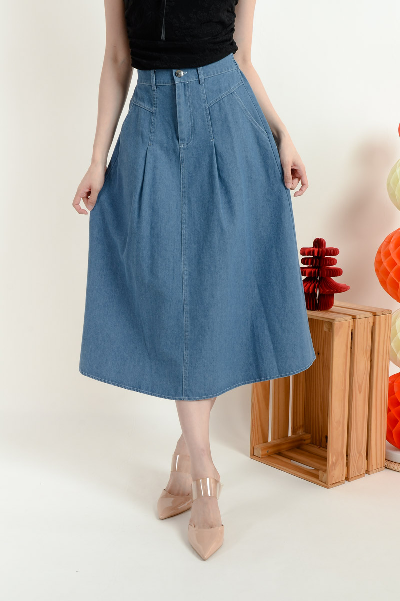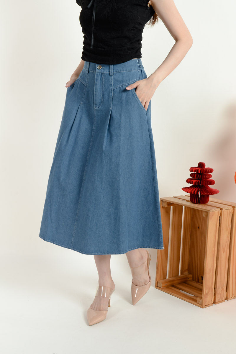 Izabella Midi Denim Skirt - Light Blue