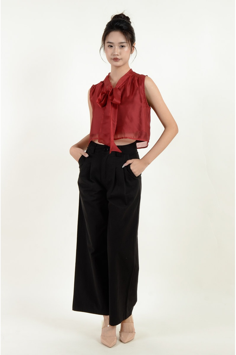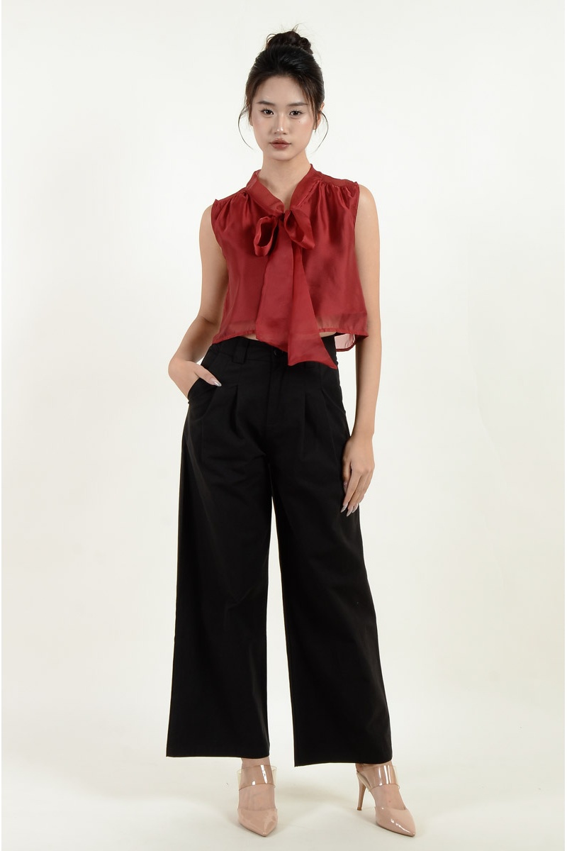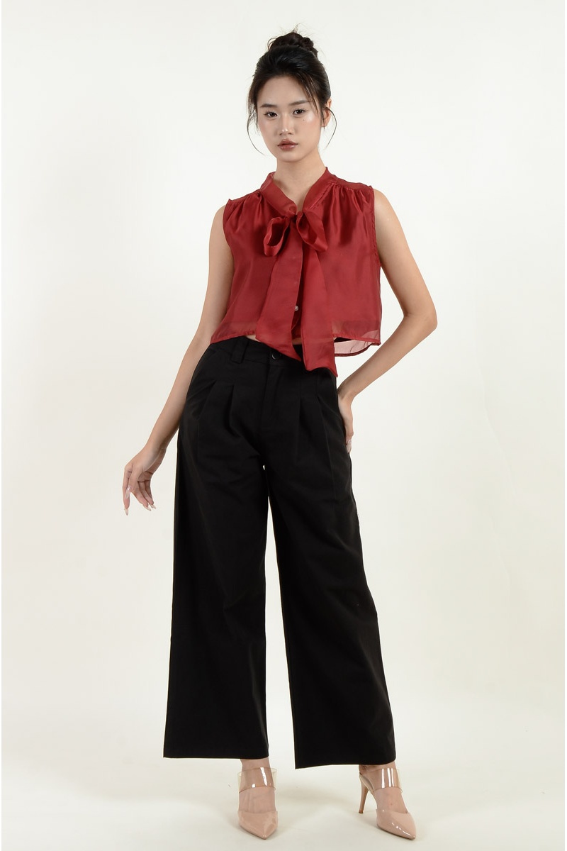 Megan Sleeveless Bow Top - Wine