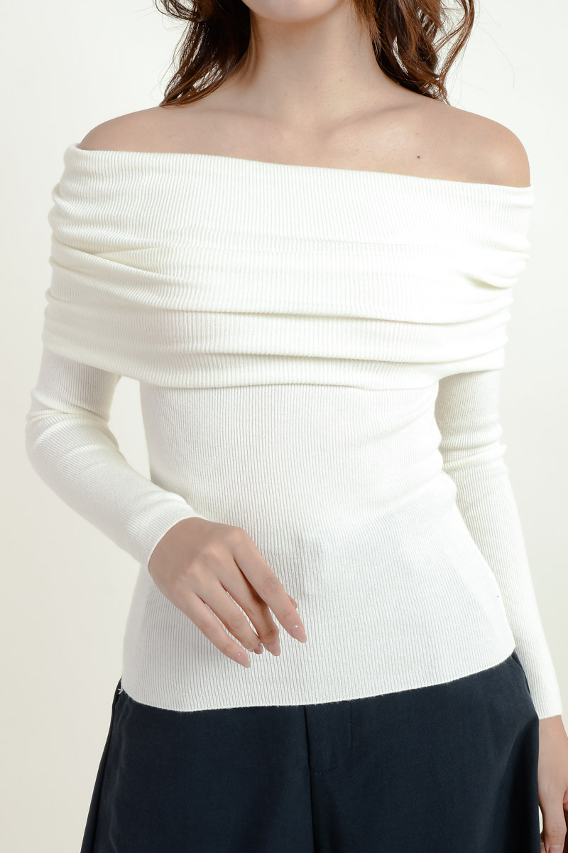[3 for RM 99] Jolene Off Shoulder Knit Top - Beige