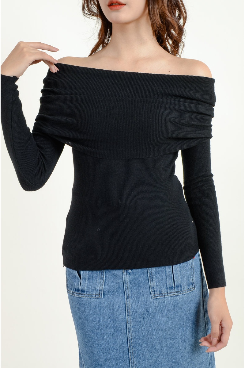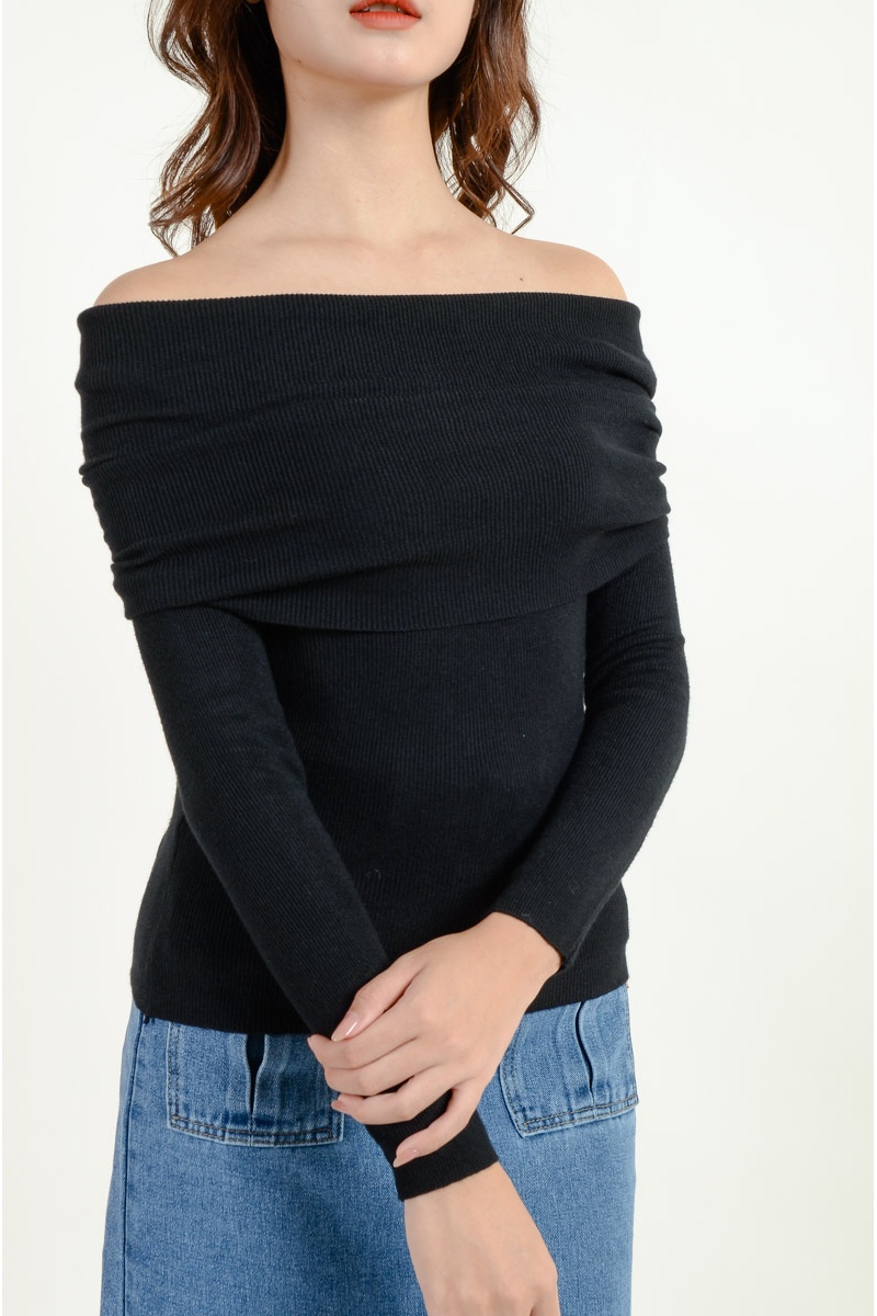 [3 for RM 99] Jolene Off Shoulder Knit Top - Black