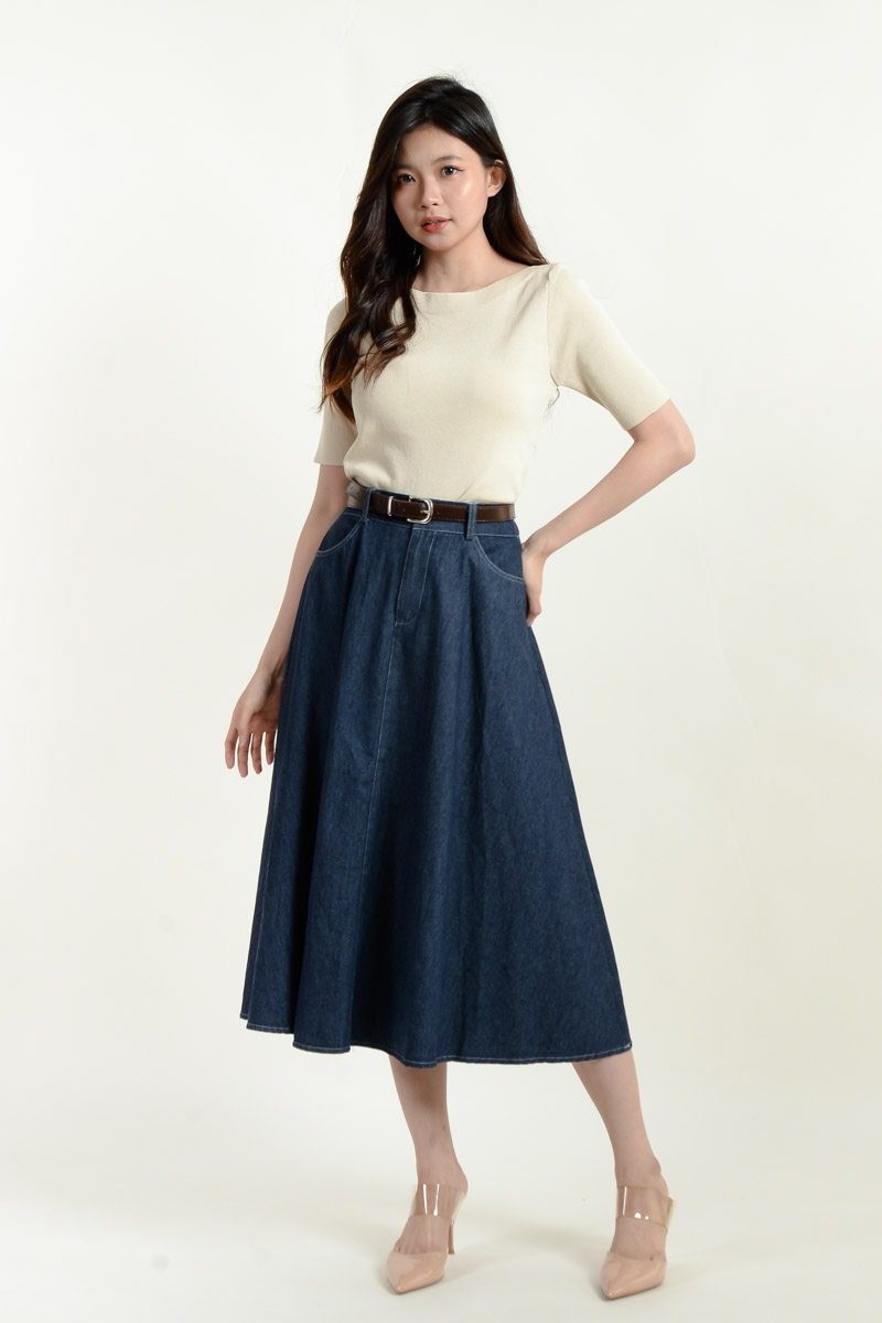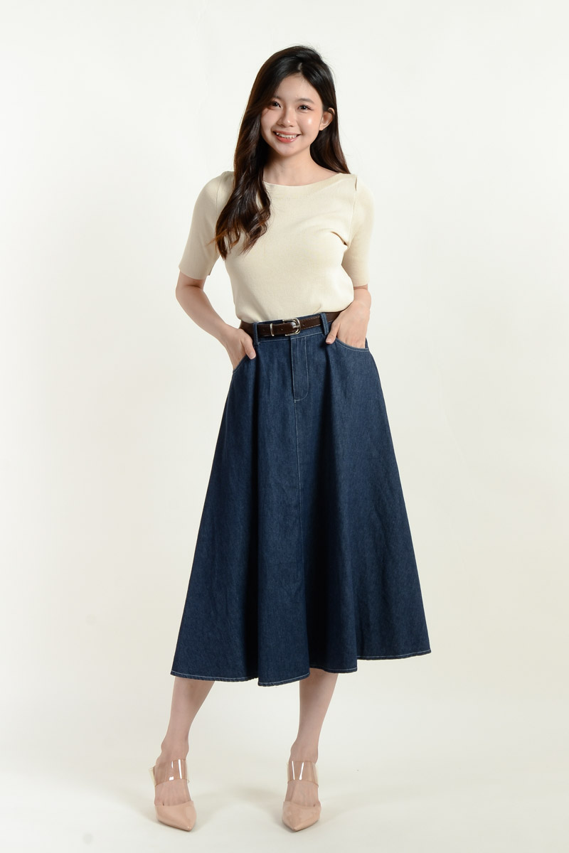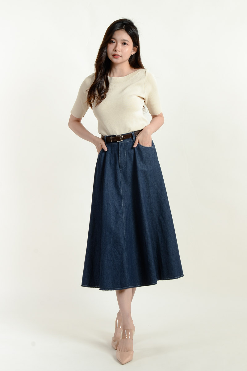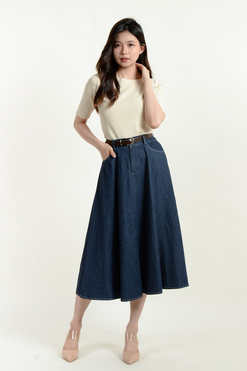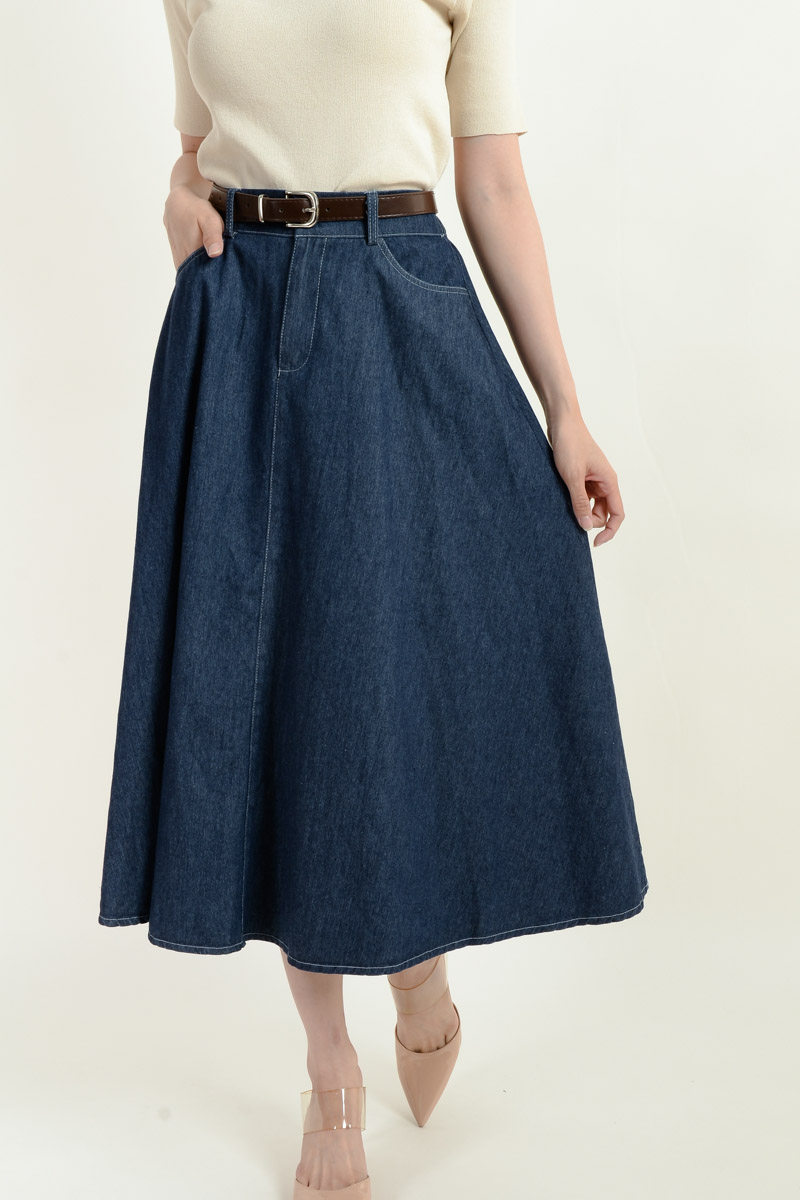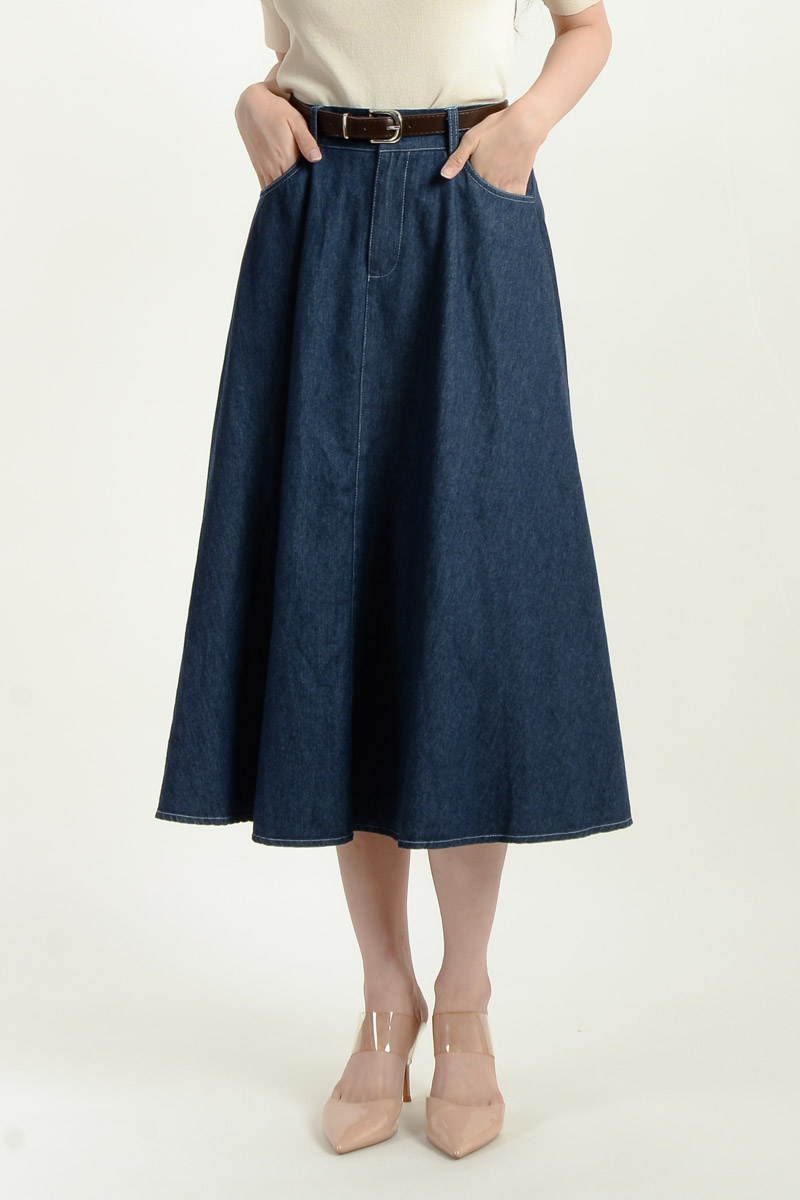 Kate Belted Denim Skirt - Dark Blue