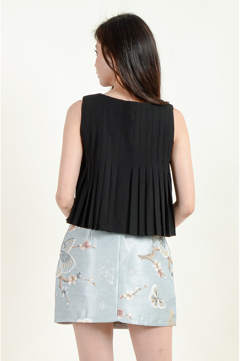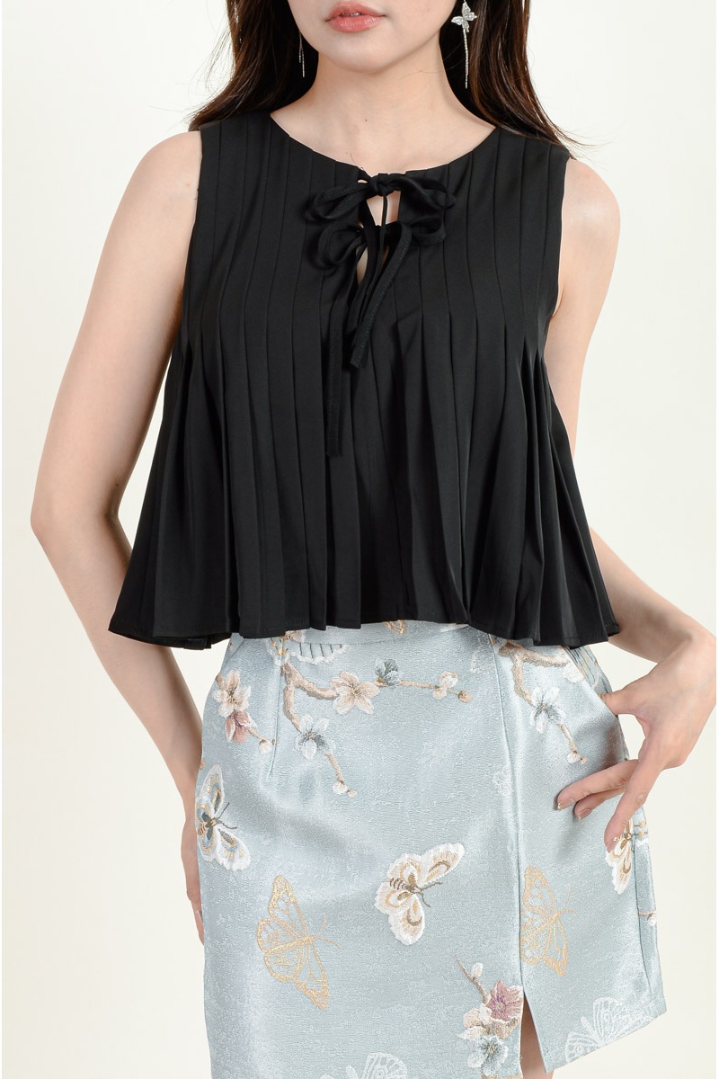 Kathryn Pleated Flare Top - Black