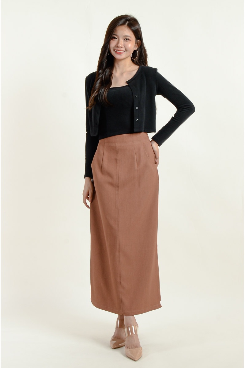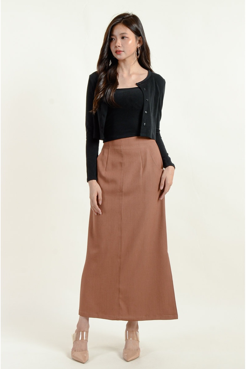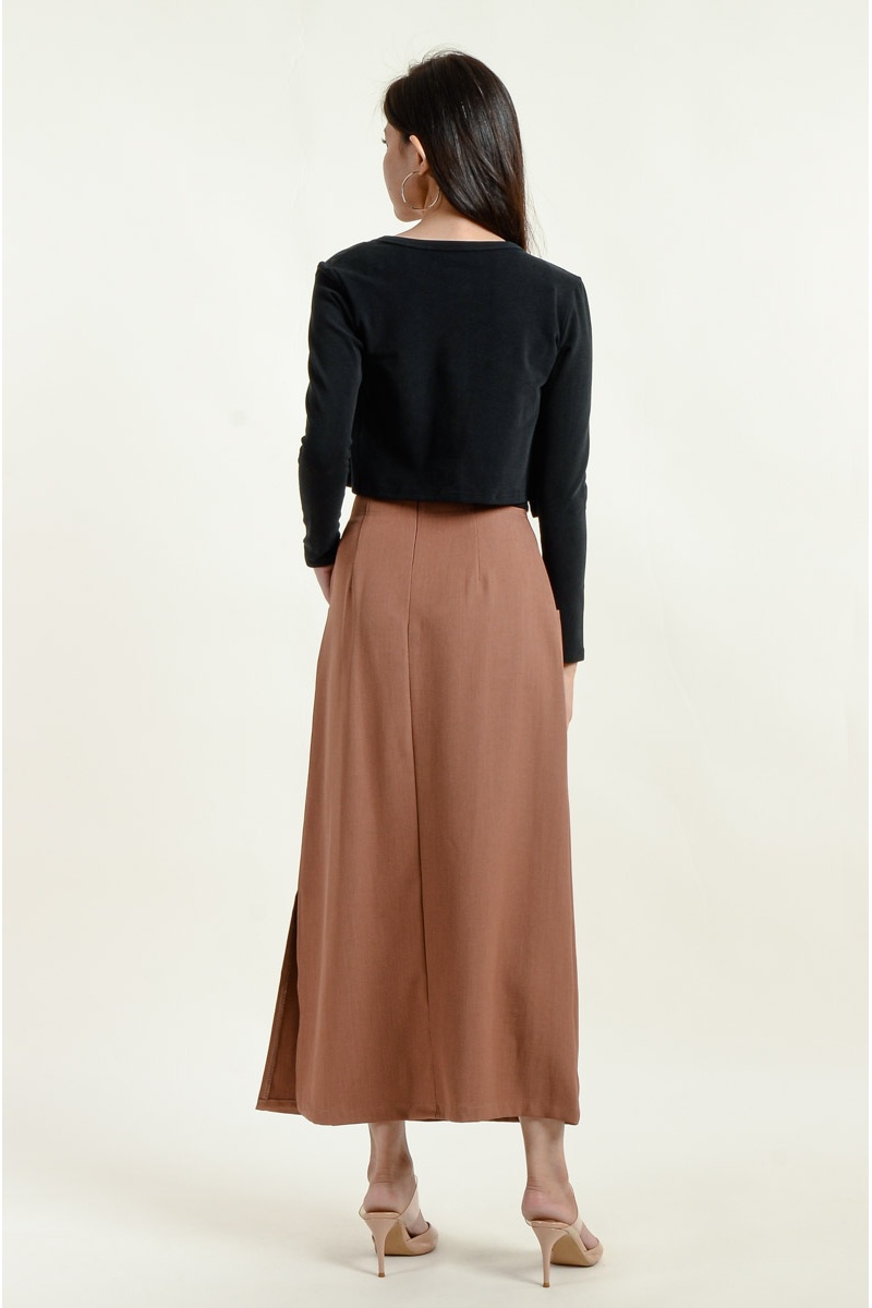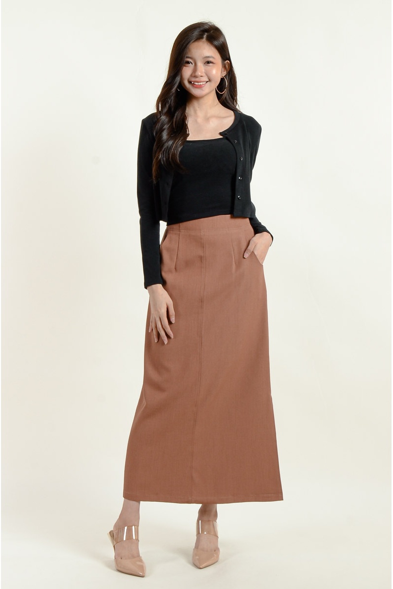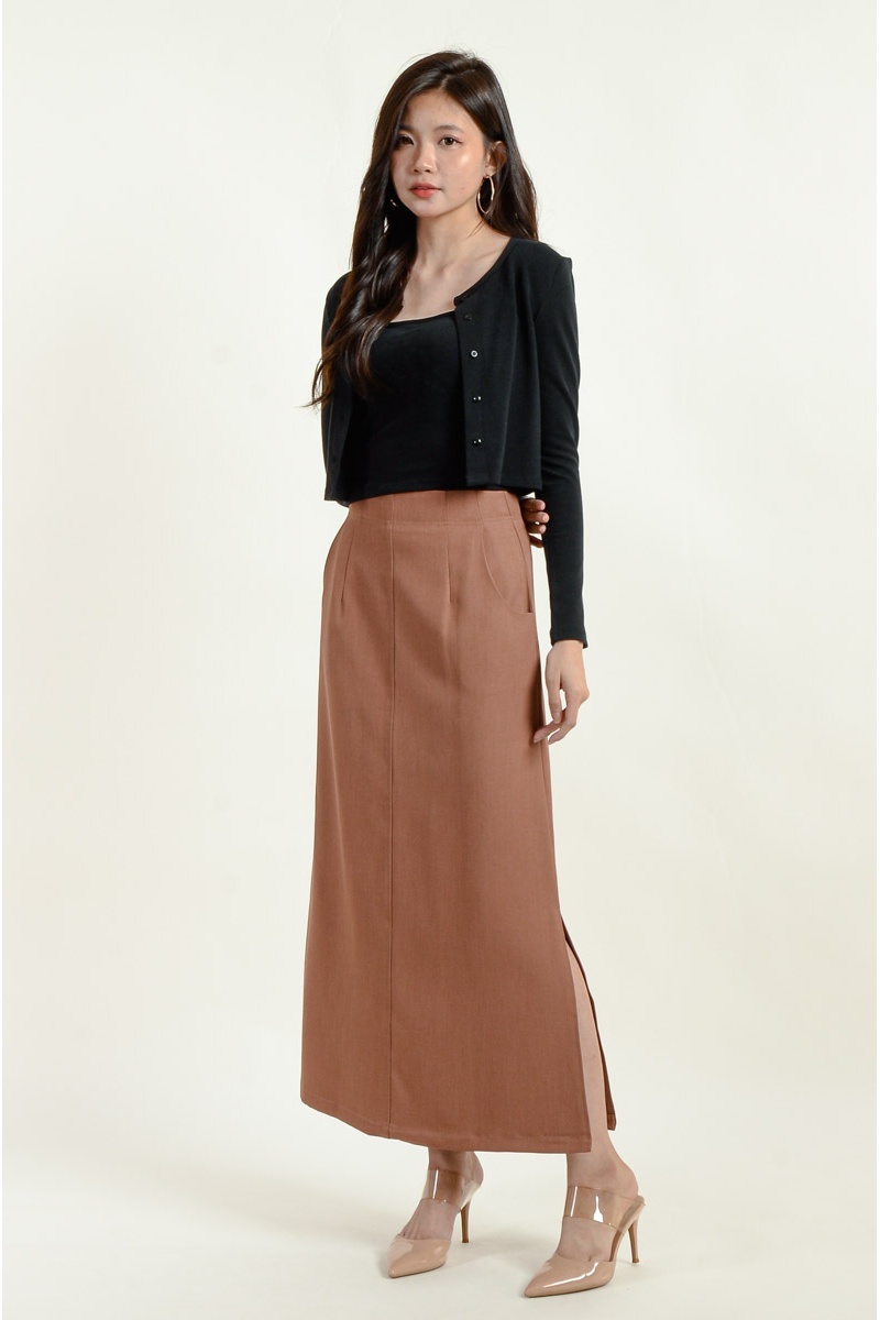 Lina Pocket Slit Skirt - Coffee
