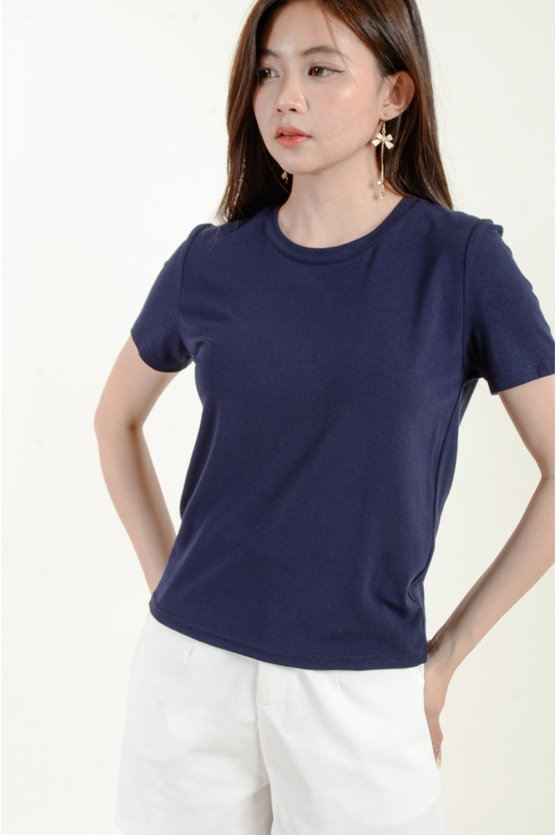 [3 for RM 99] Kimber Round Neck Basic Top - Navy