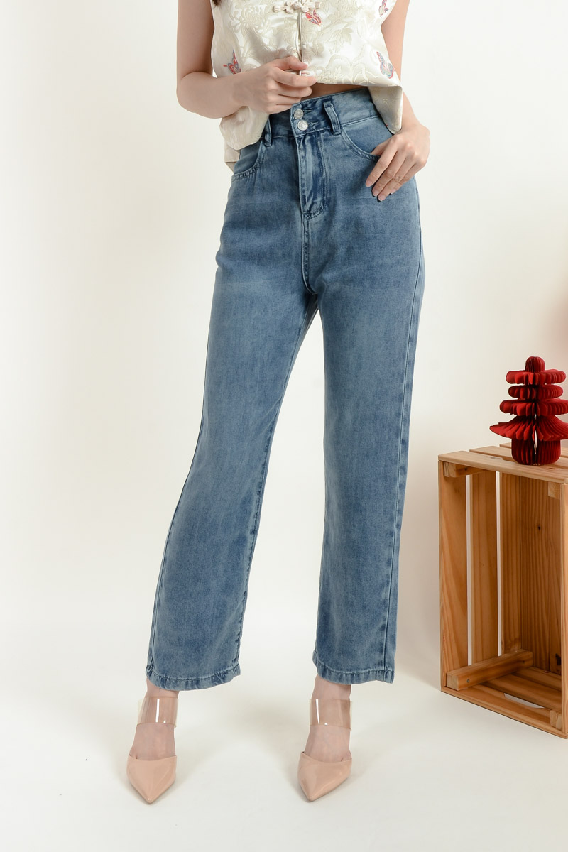 Leighton Double Button Jeans - Dark Blue