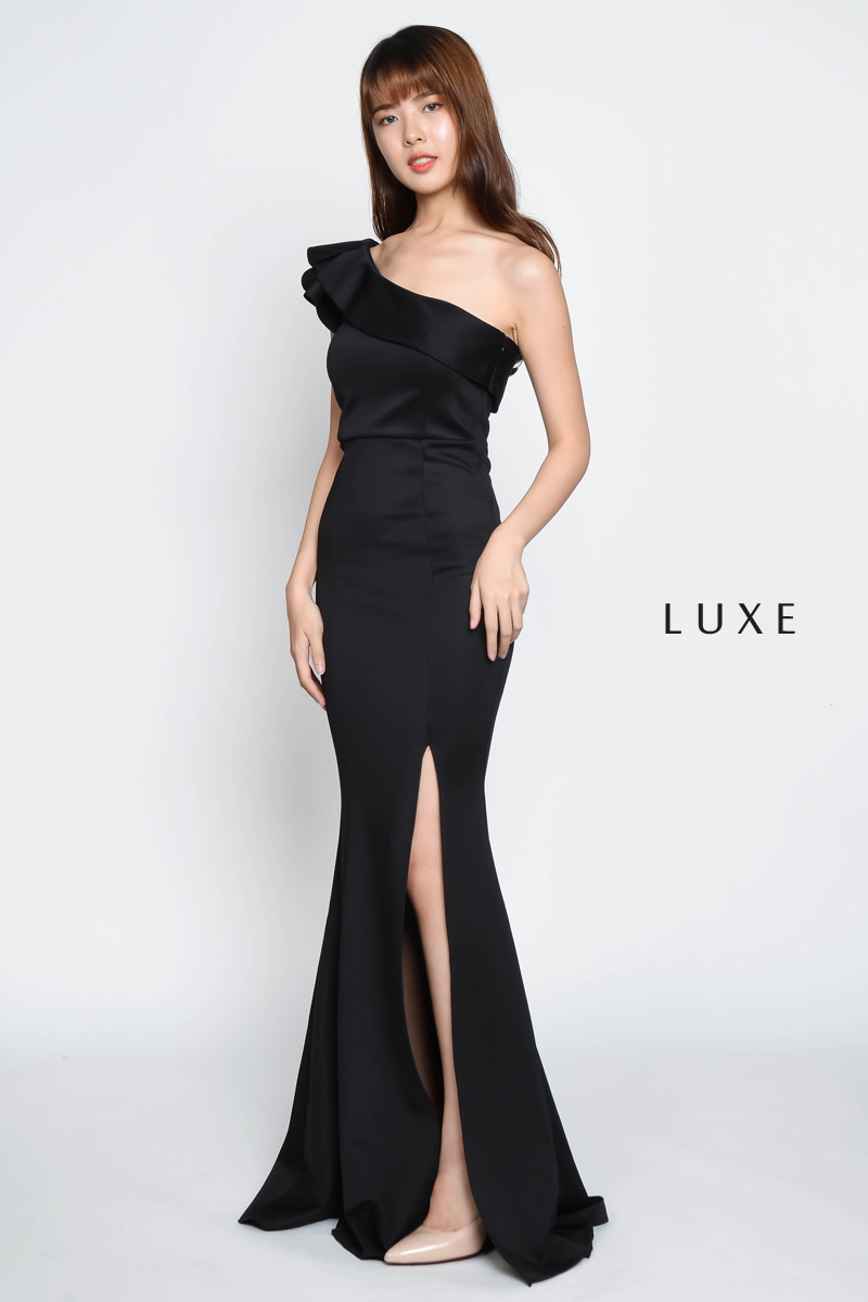 Aleena Ruffle Maxi Dress - Black