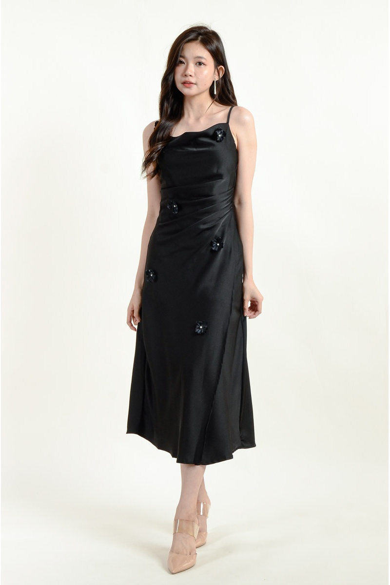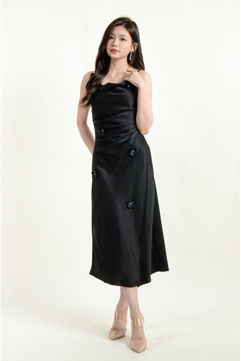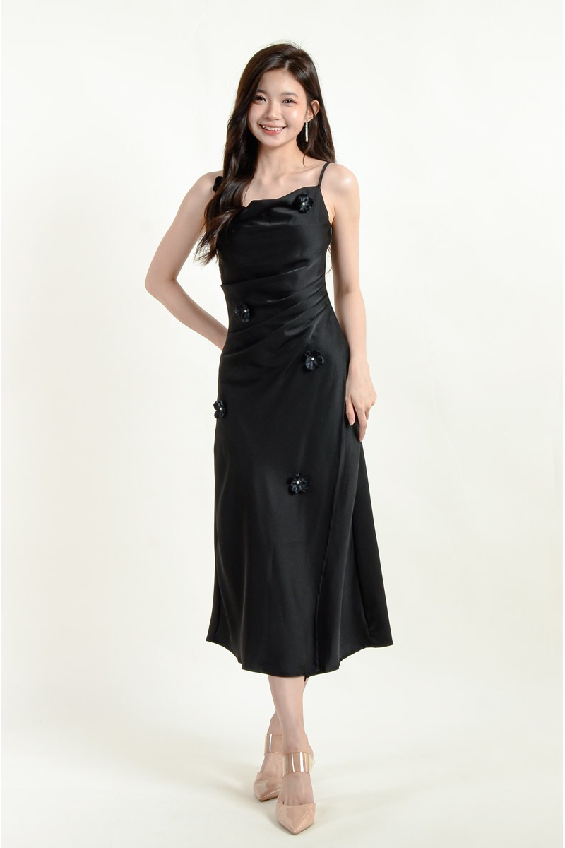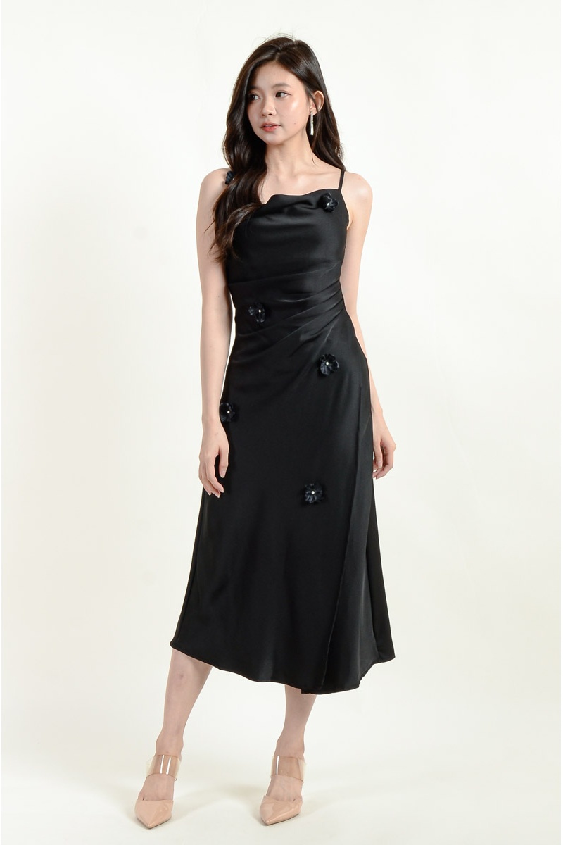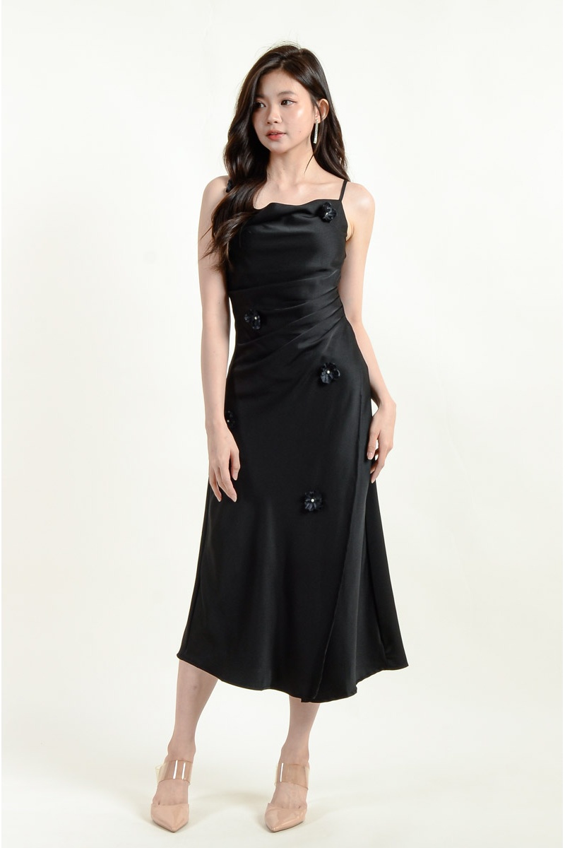 Maliyah Strap Floral Dress - Black