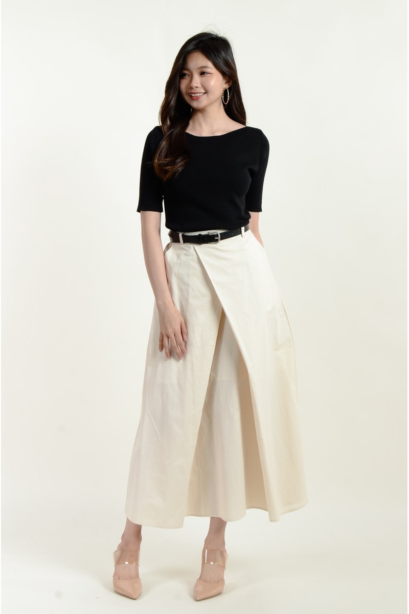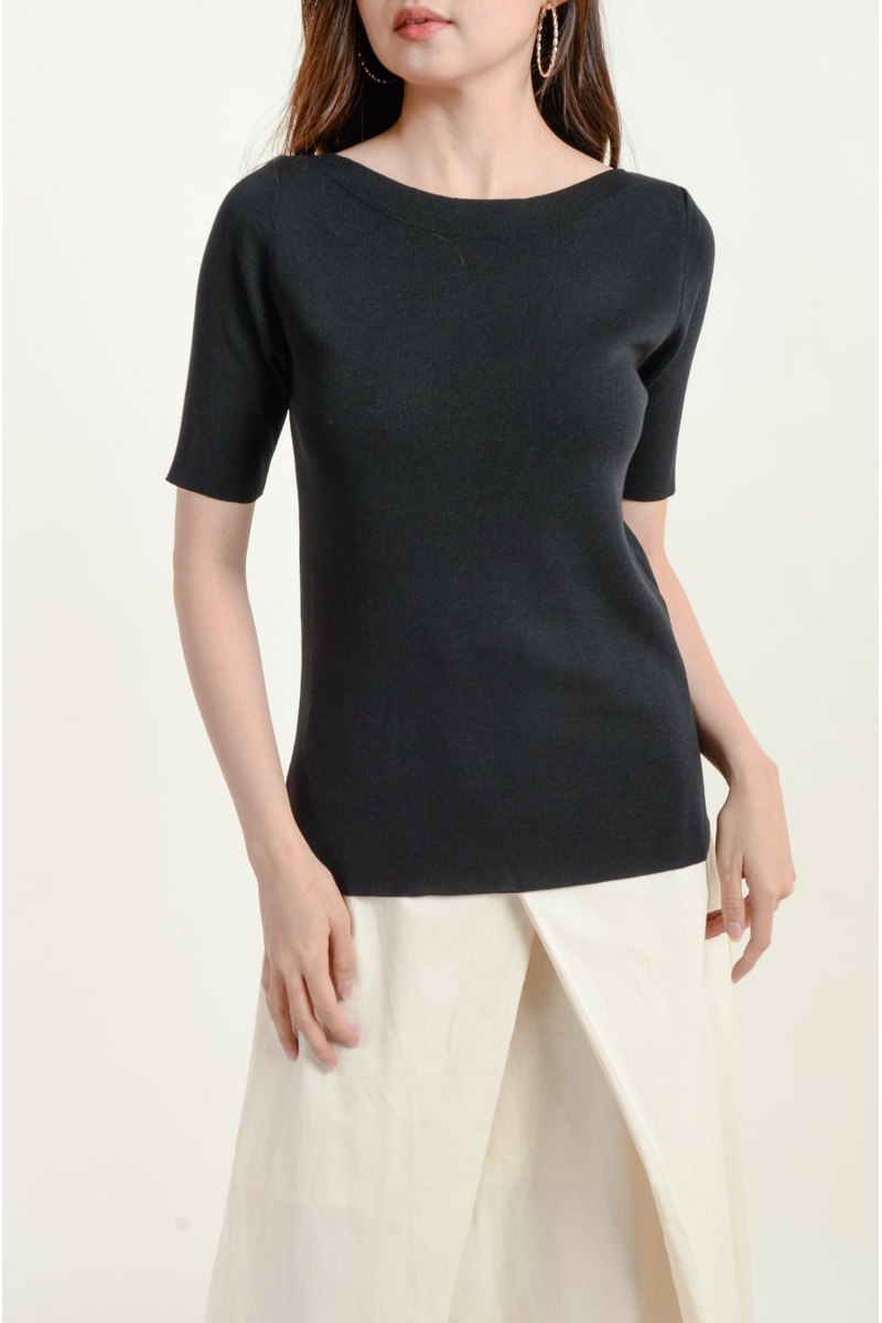 Maryam Boat Neck Knitted Top - Black