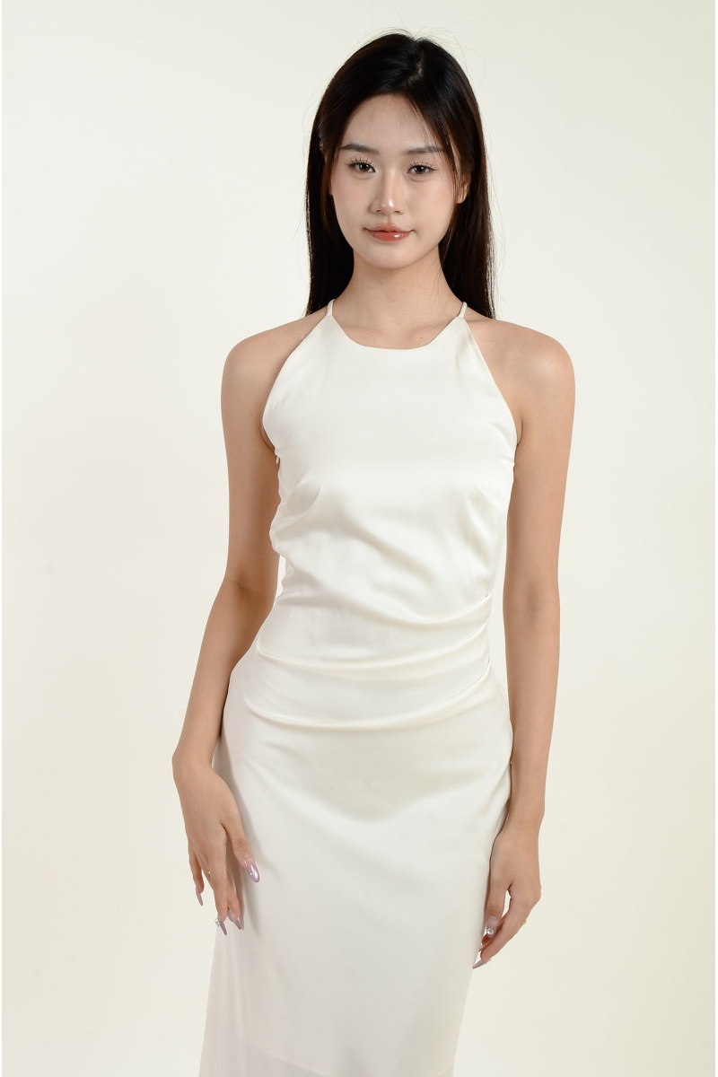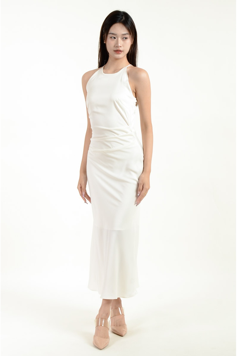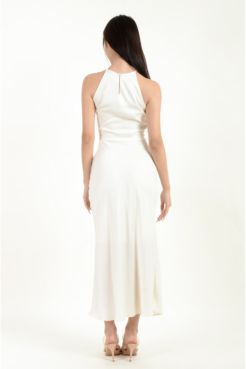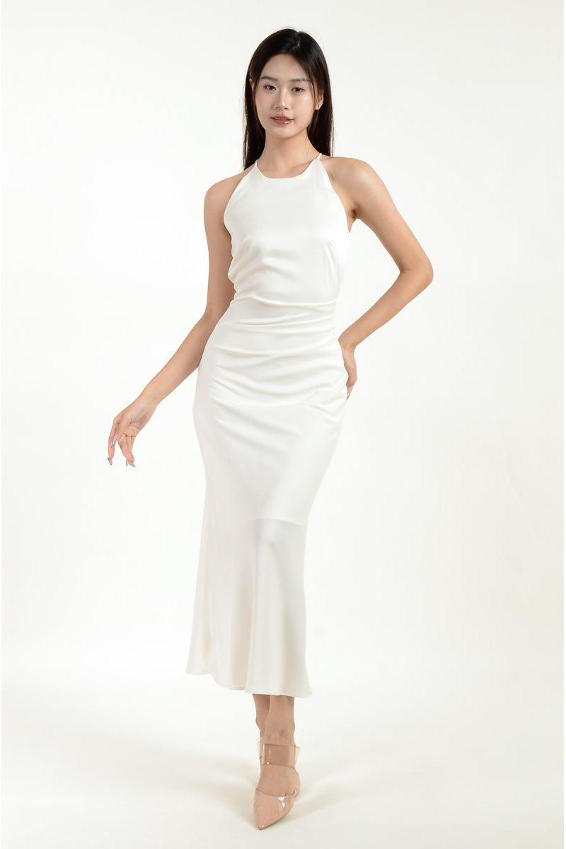 Mina Halter Satin Mermaid Dress - White