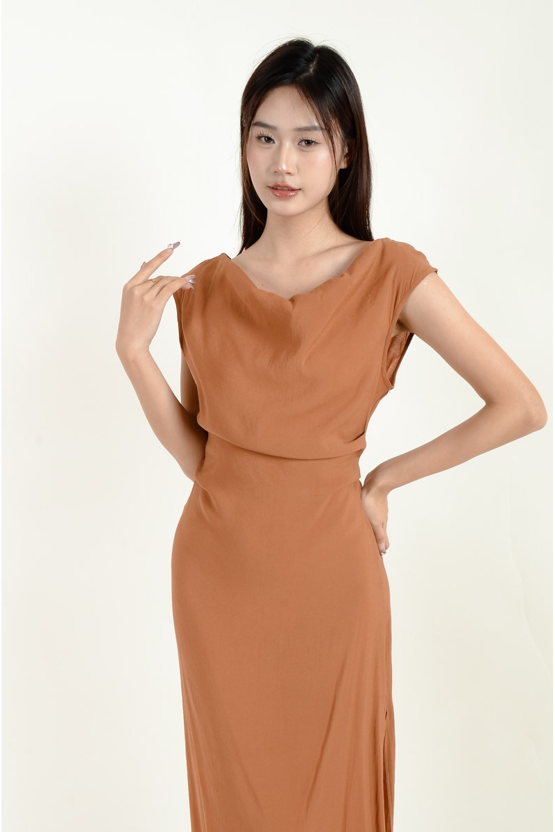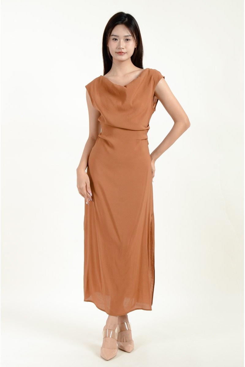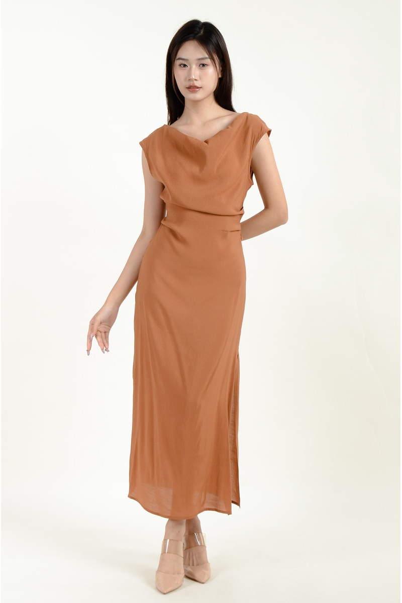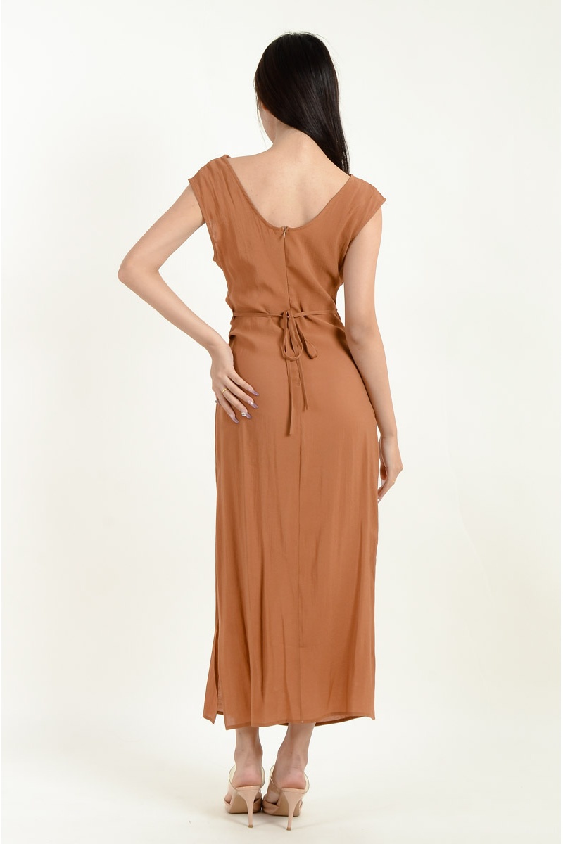 Novah Ruched Midi Dress - Brown
