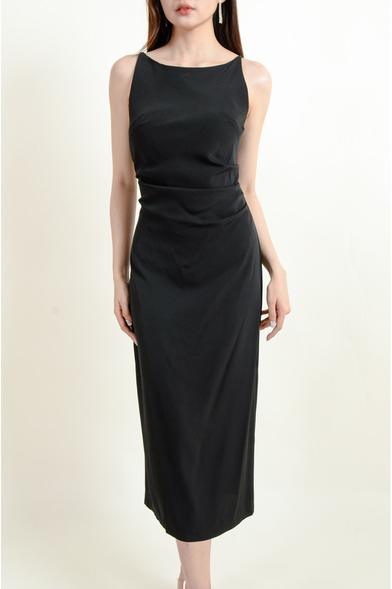 [BackOrder ETA 30 Apr] Jayleen Back Slit Ruched Dress - Black
