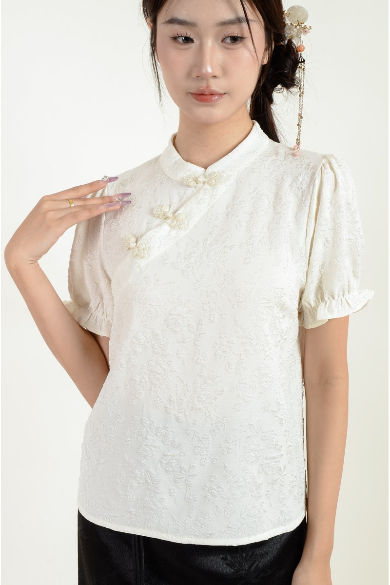 Perse Embossed Cheongsam Top