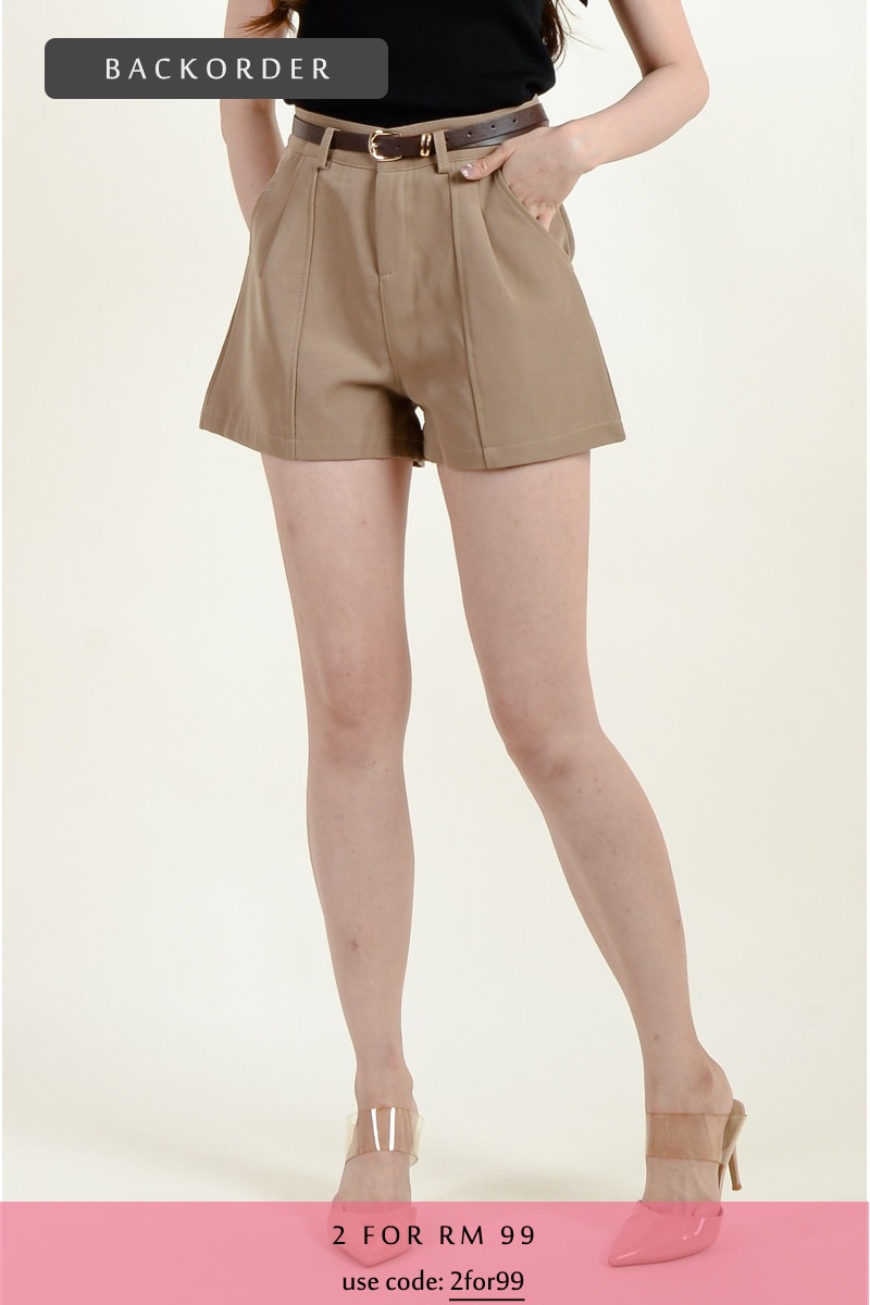 [BackOrder ETA 30 Apr] Elliott Belted Shorts - Khaki