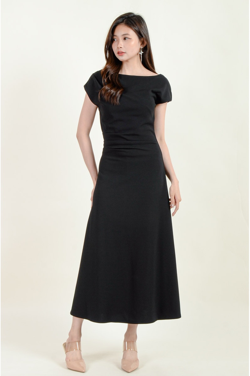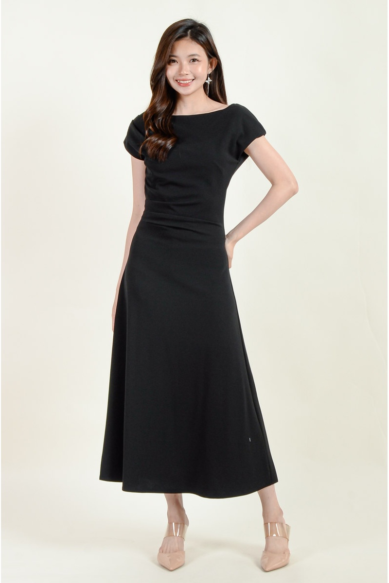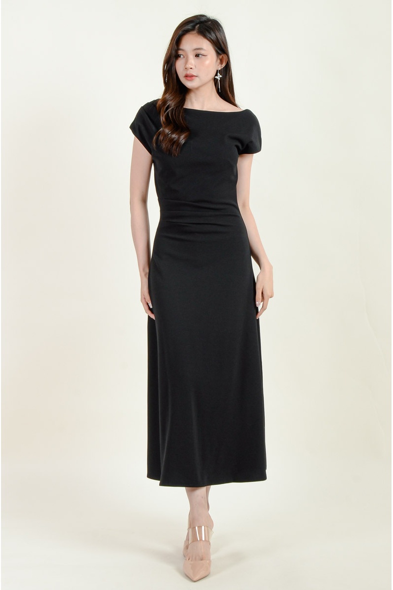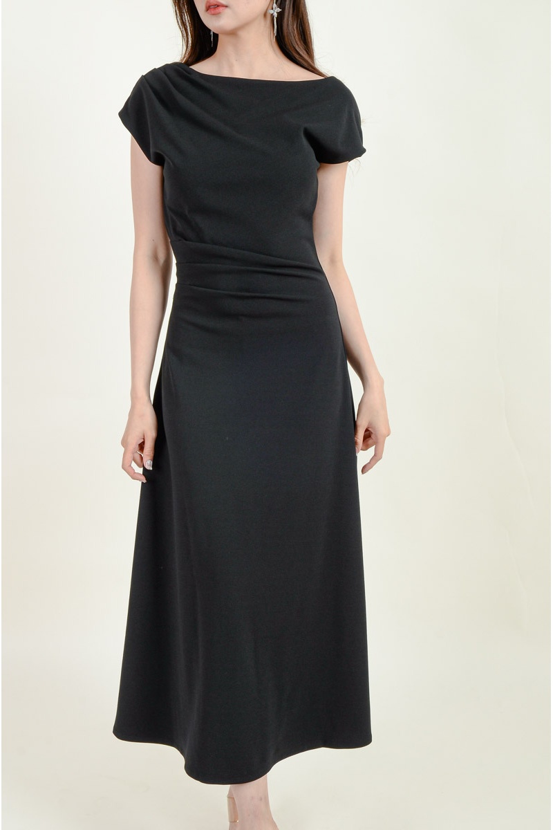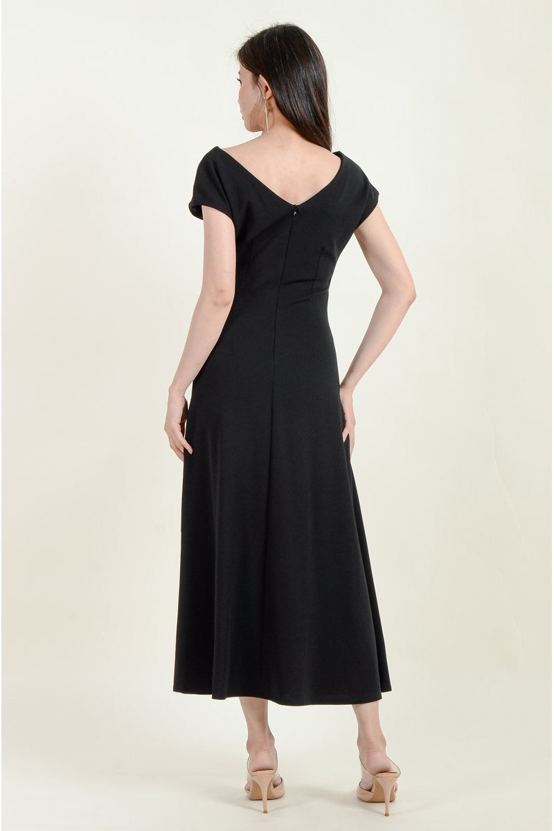 Remy Toga Shoulder Midi Dress - Black