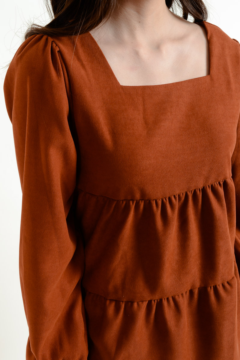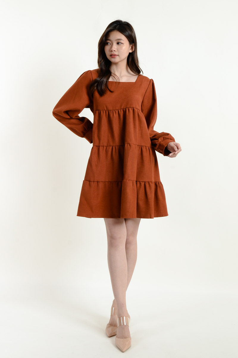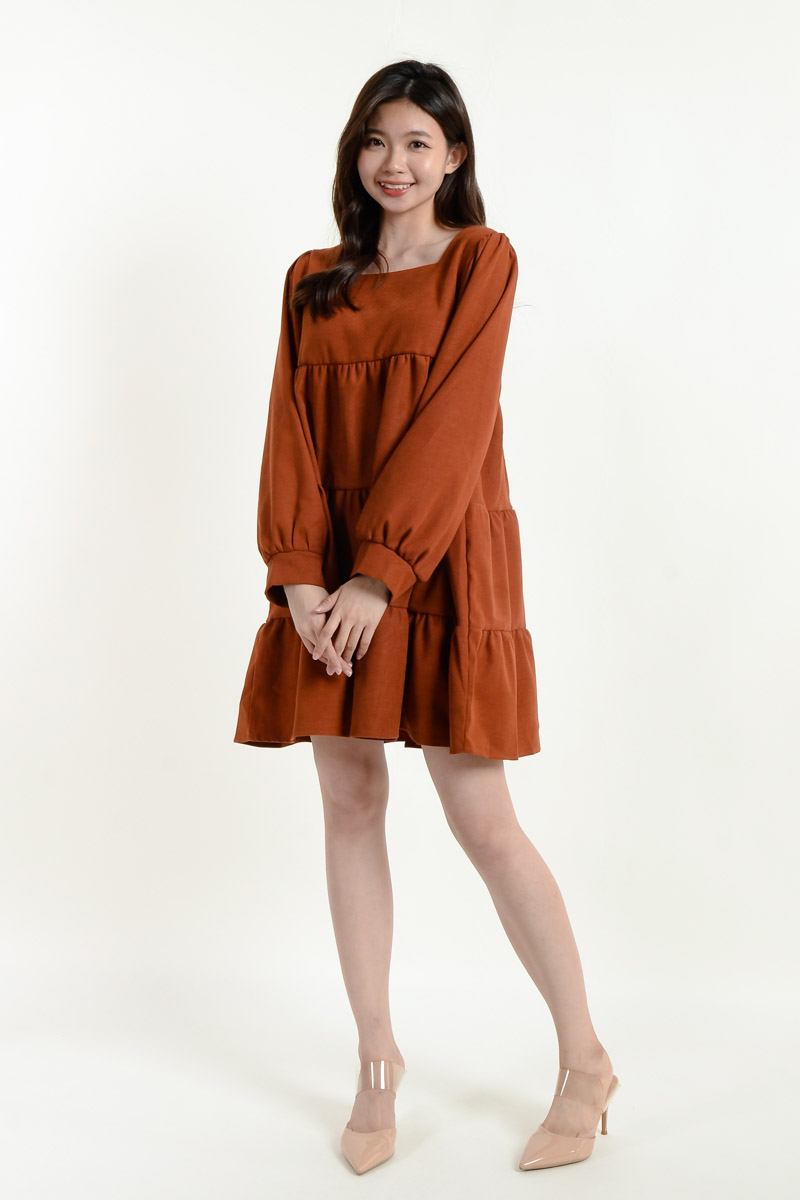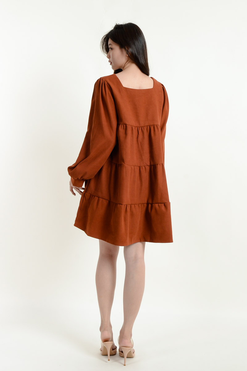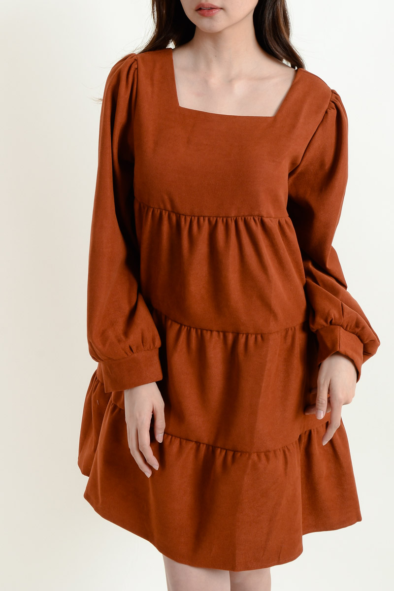 Rosemary Long Sleeve Layered Dress - Coffee