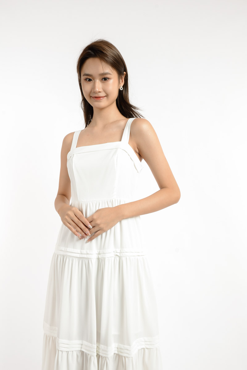 Sage Layered Dress - White