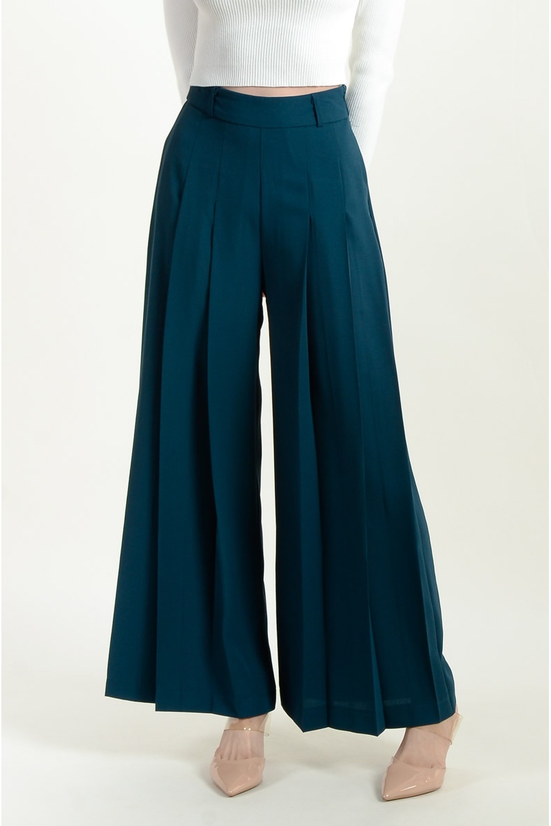 Salem Pleated Palazzo Pants - Green