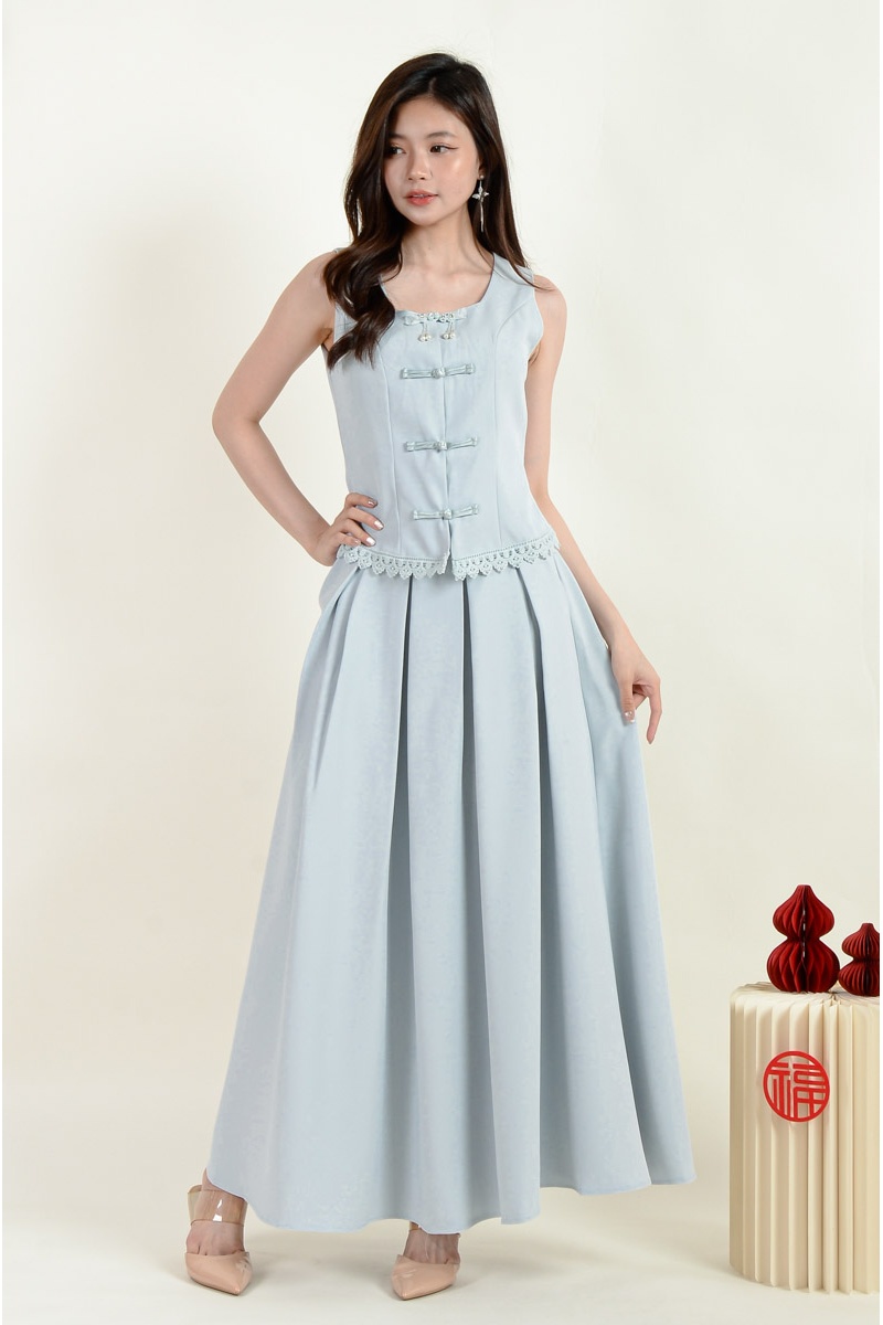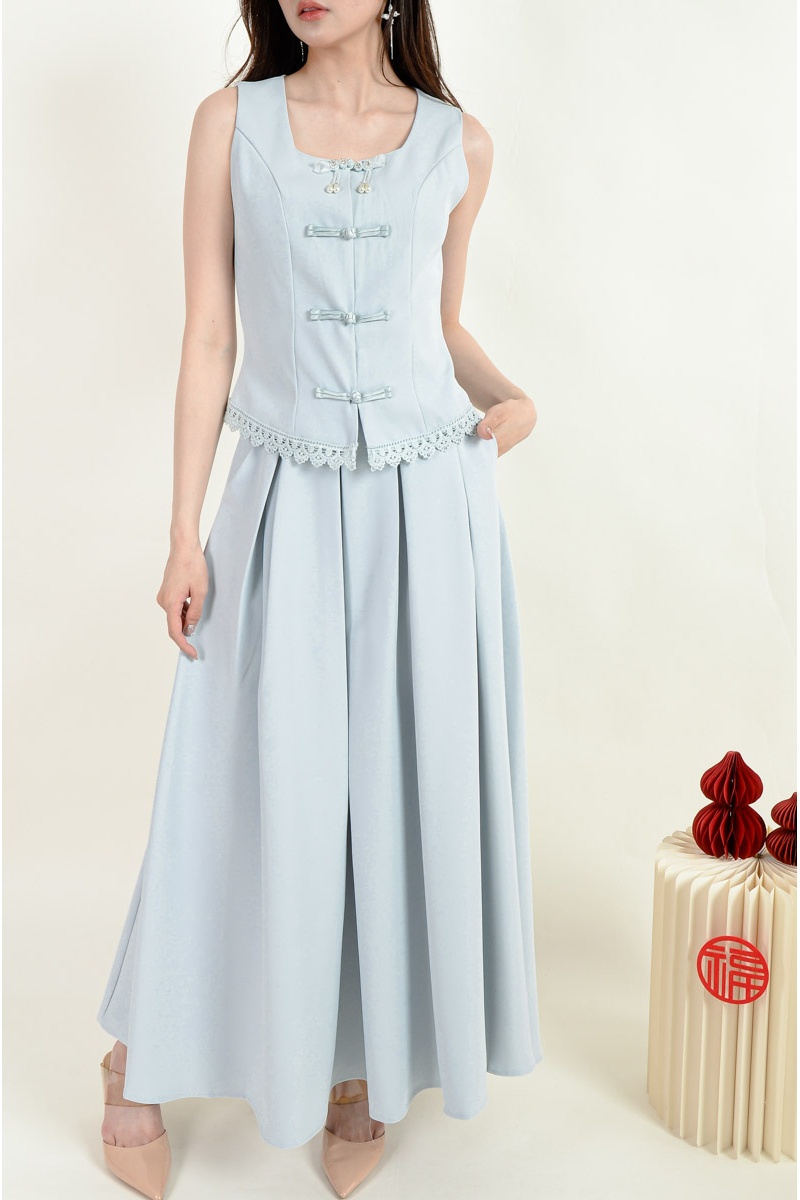 Sasha Cheongsam Top and Pleated Skirt Set - Baby Blue