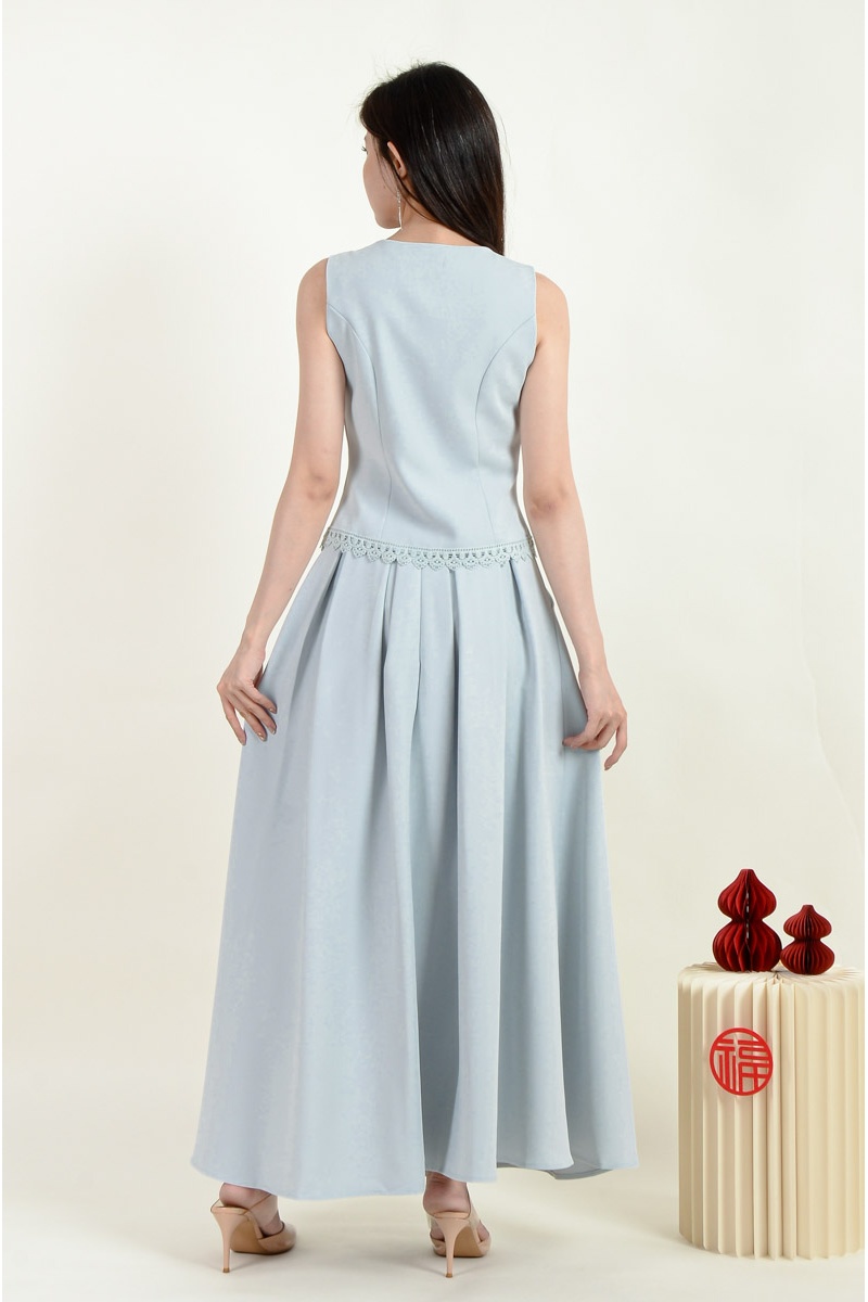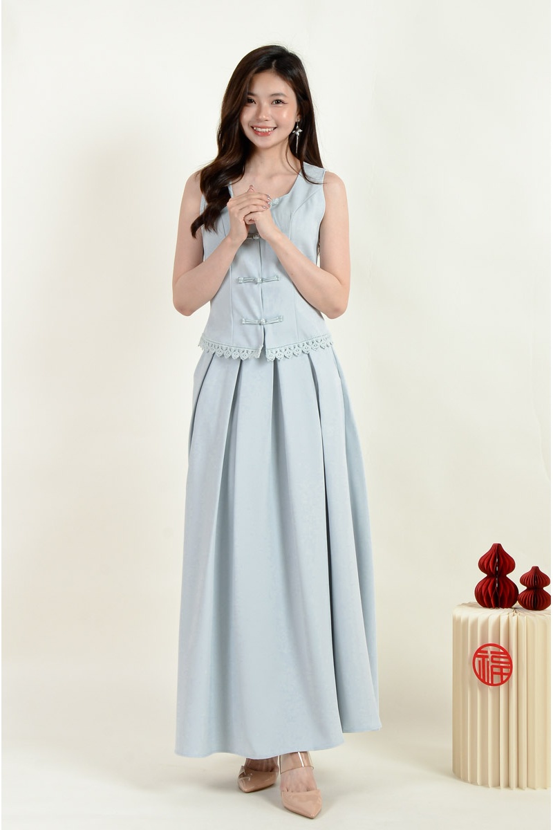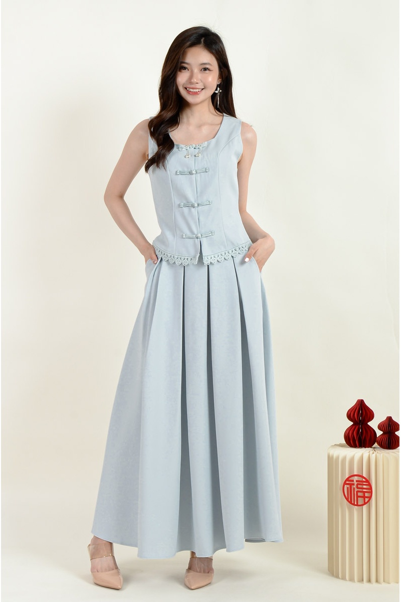 Sasha Cheongsam Top and Pleated Skirt Set - Baby Blue