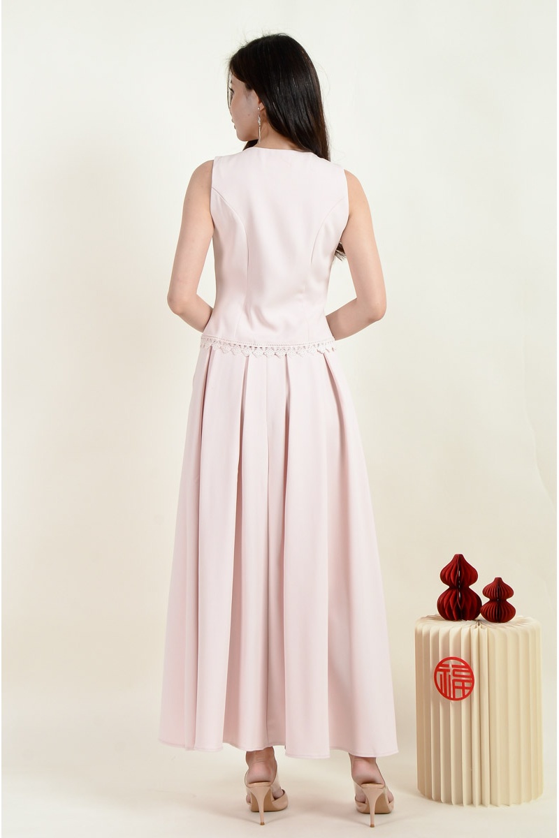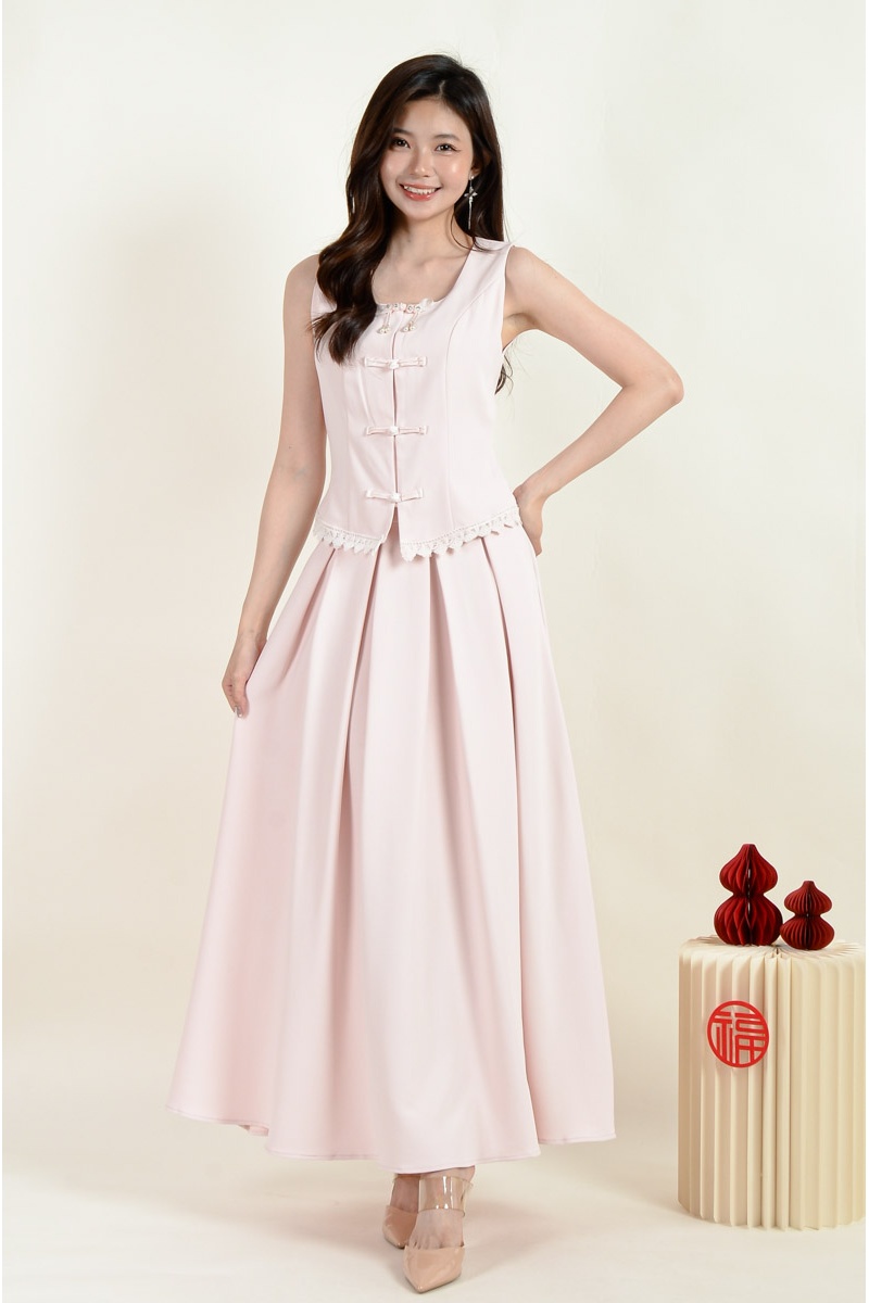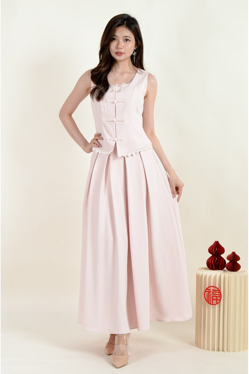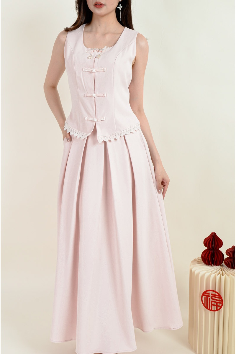 Sasha Cheongsam Top and Pleated Skirt Set - Pink