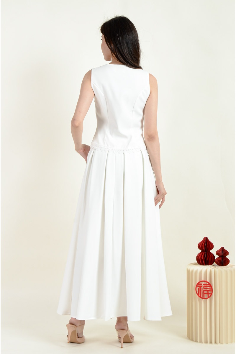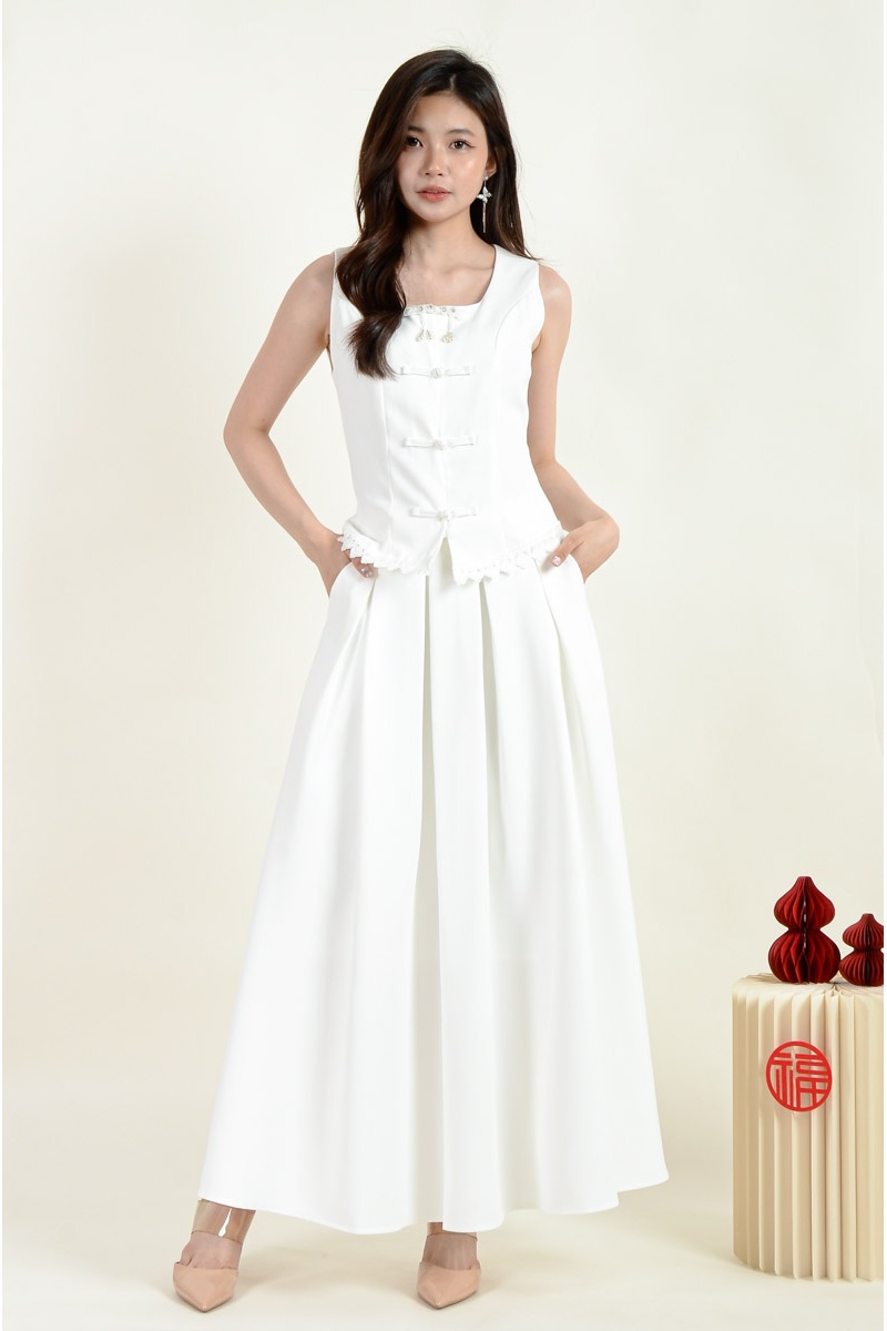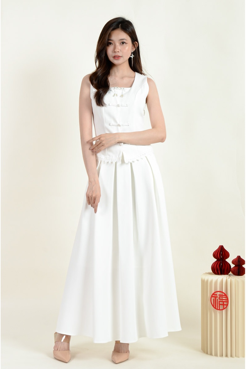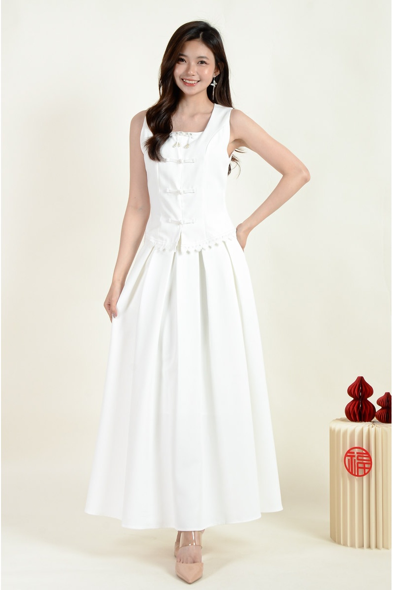 Sasha Cheongsam Top and Pleated Skirt Set - White