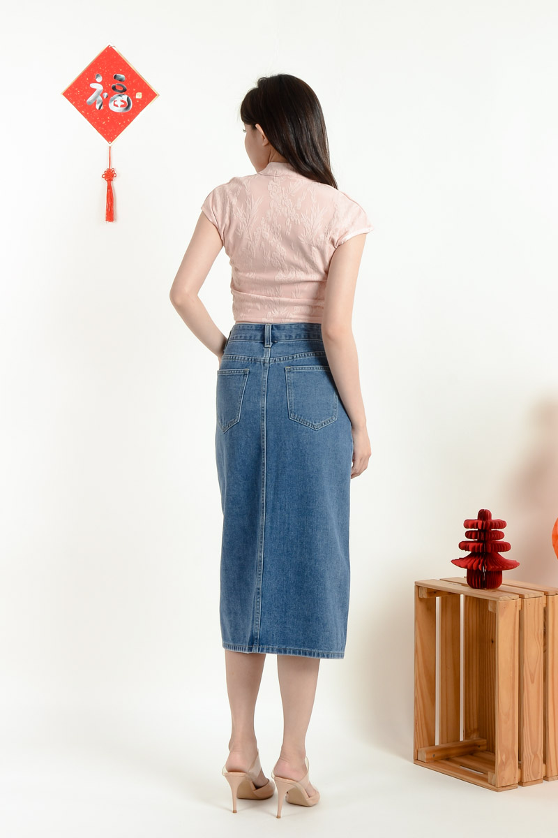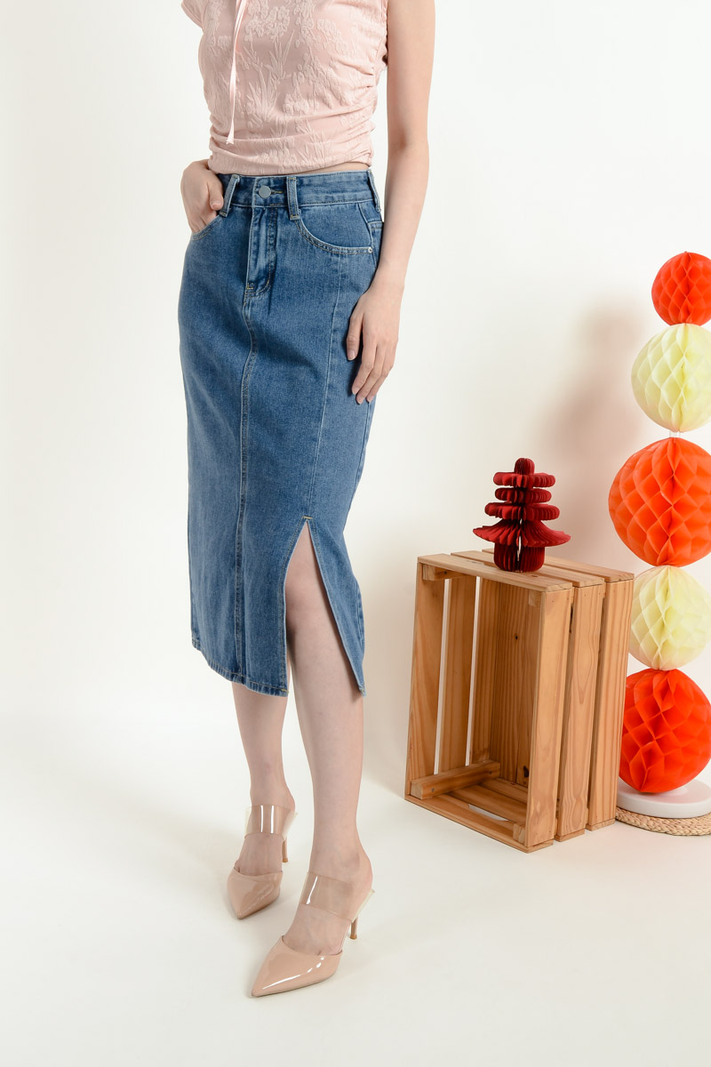 Serena Midi Straight Skirt - Light Blue