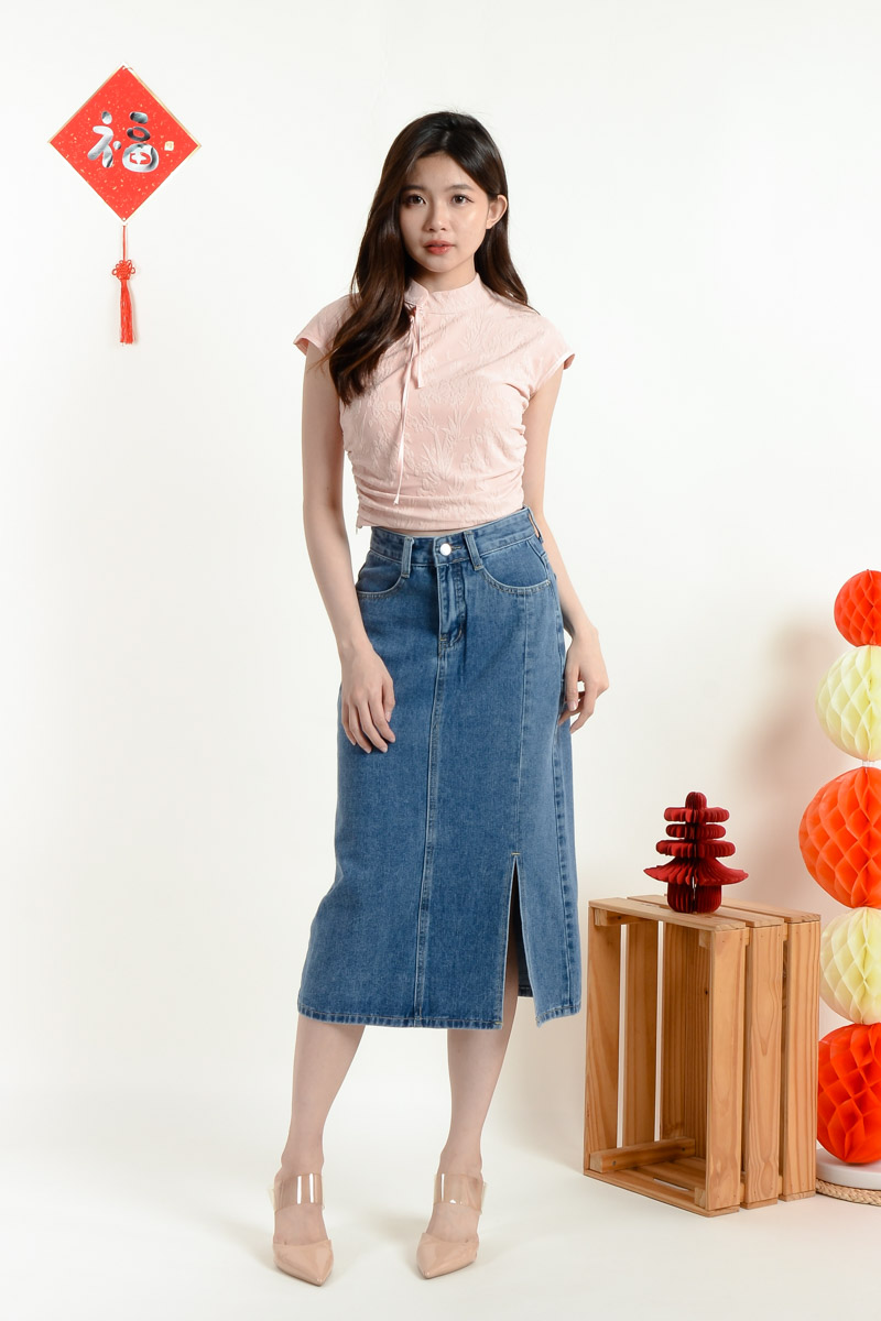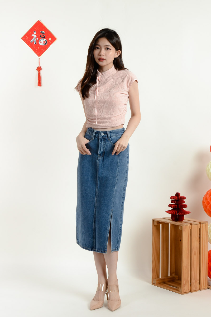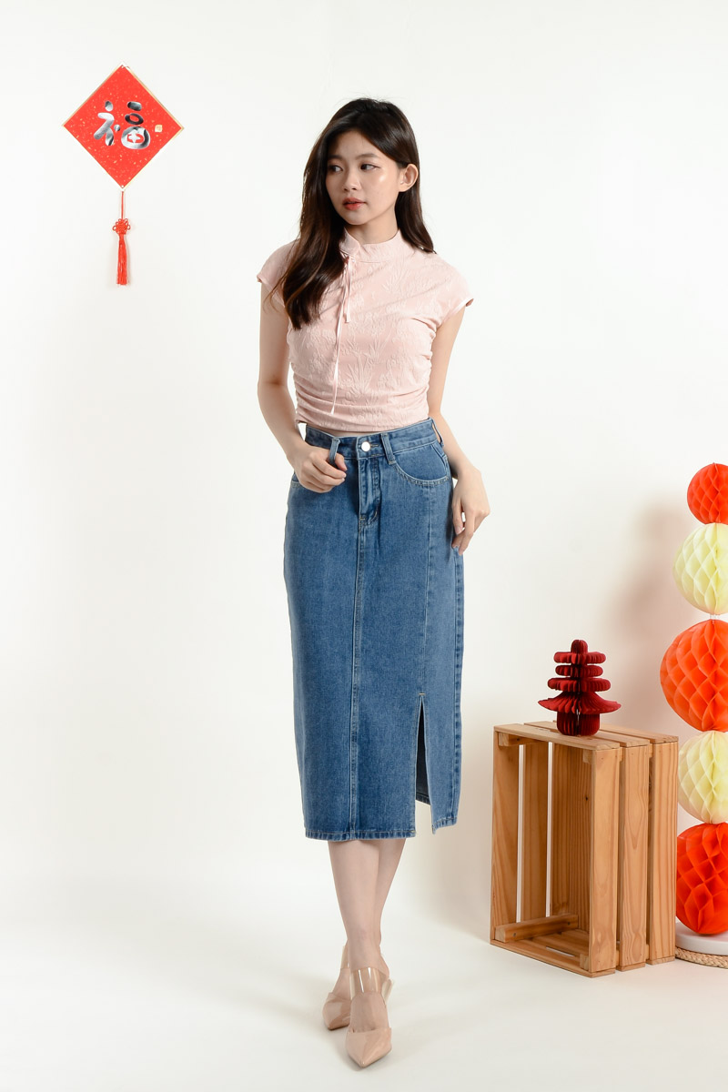 Sabrina Cinched Waist Cheongsam Top - Pink