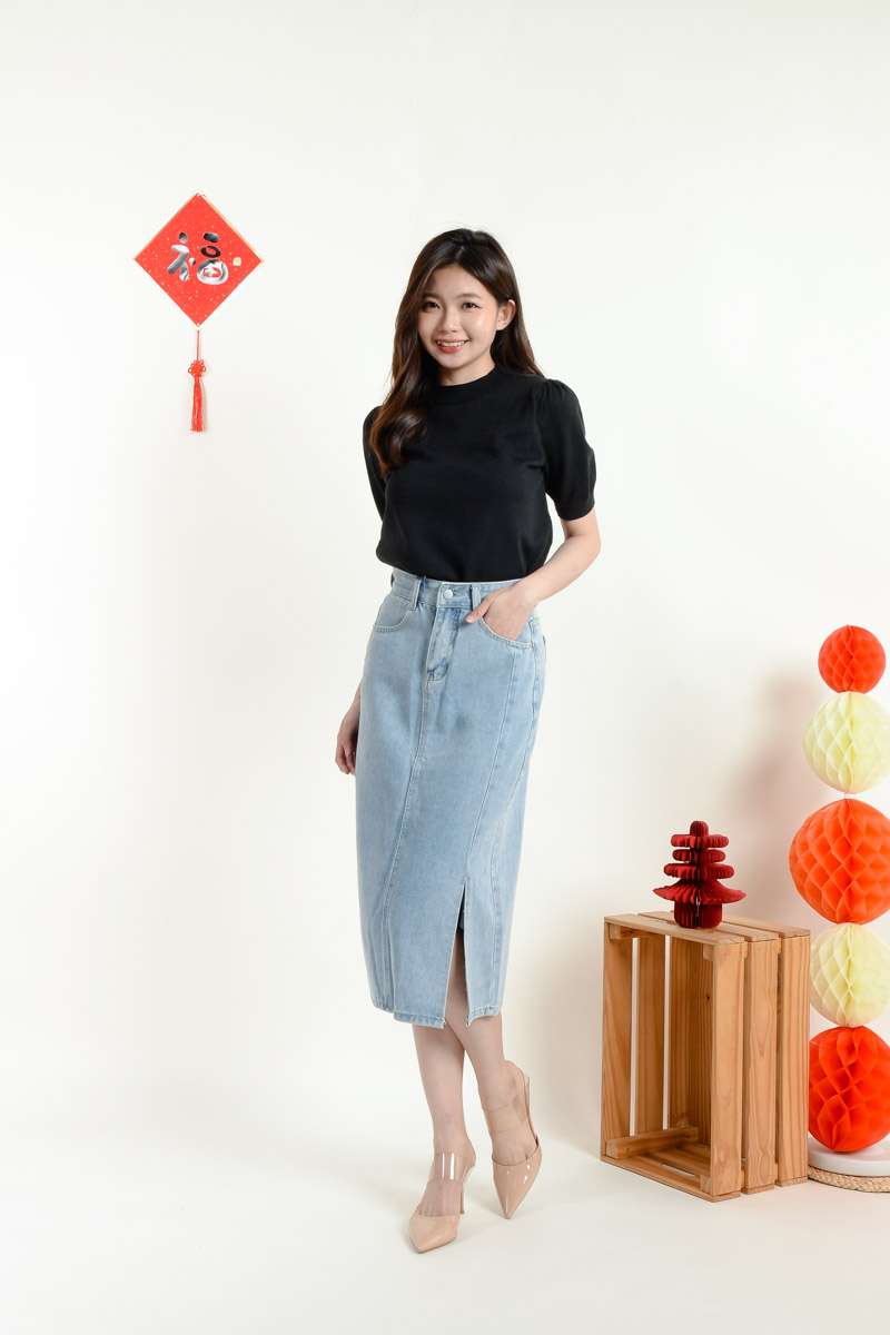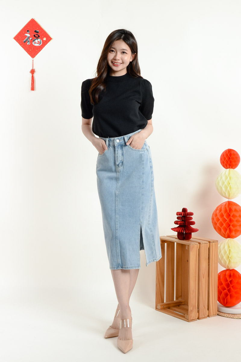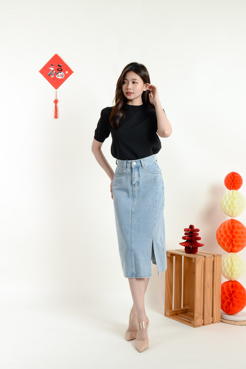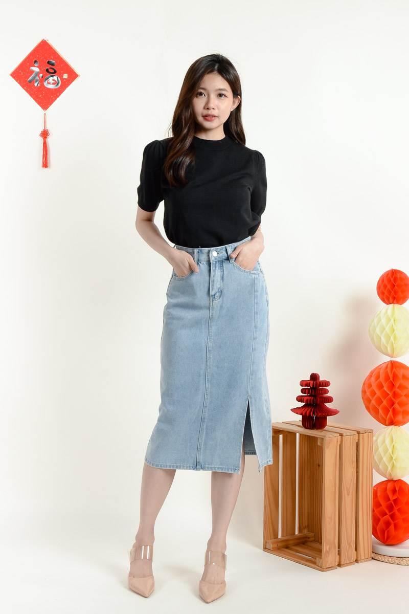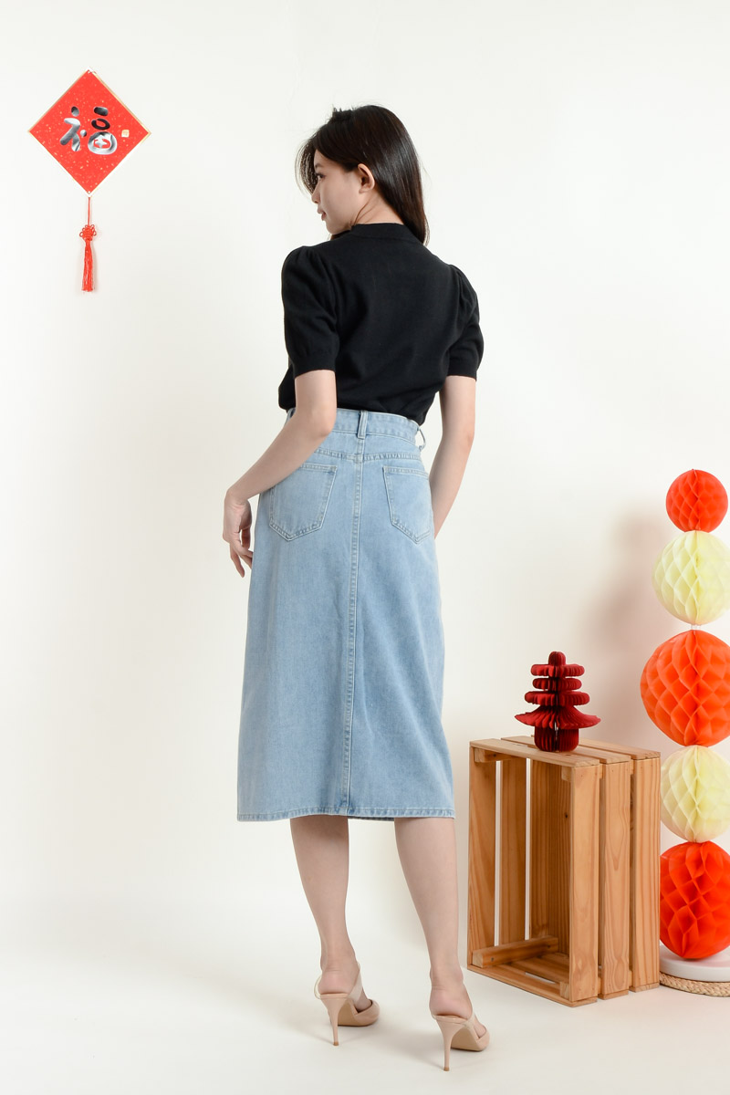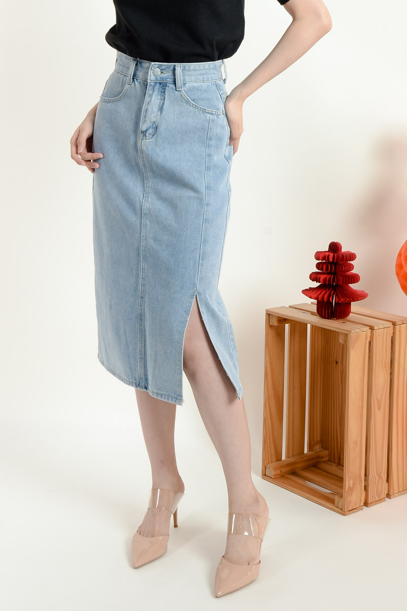Serena Midi Straight Skirt - Light Blue