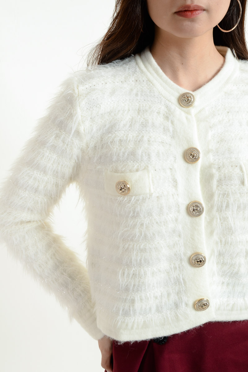 Skye Furry Cardigan - White