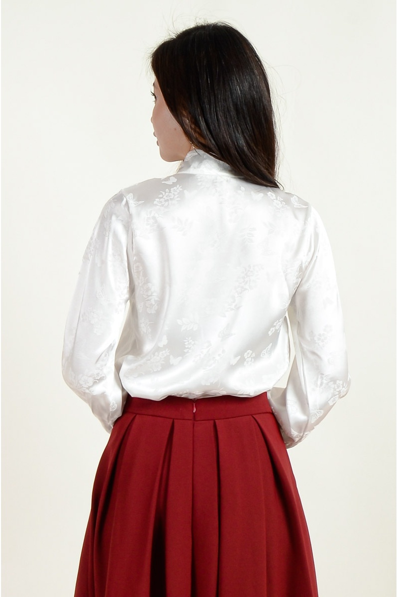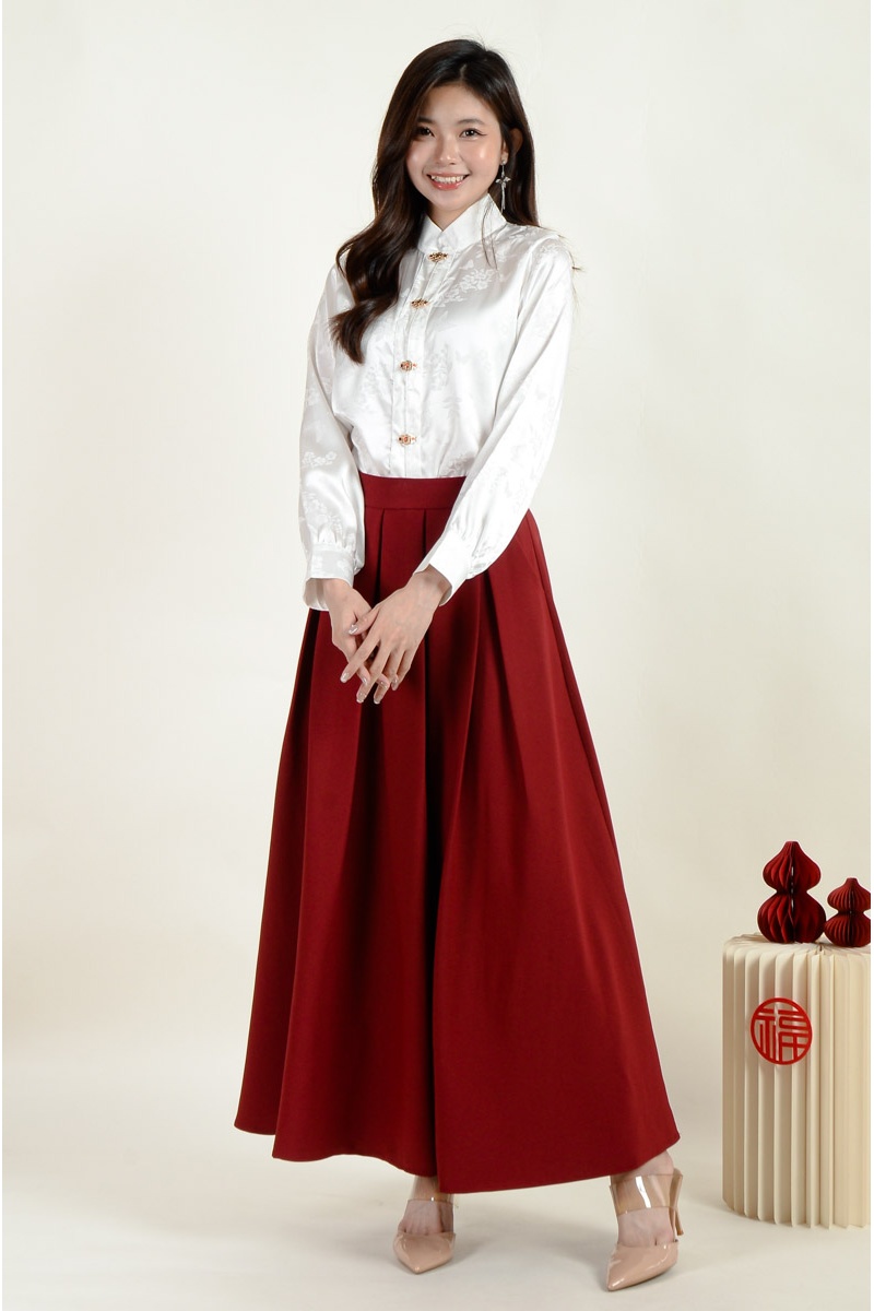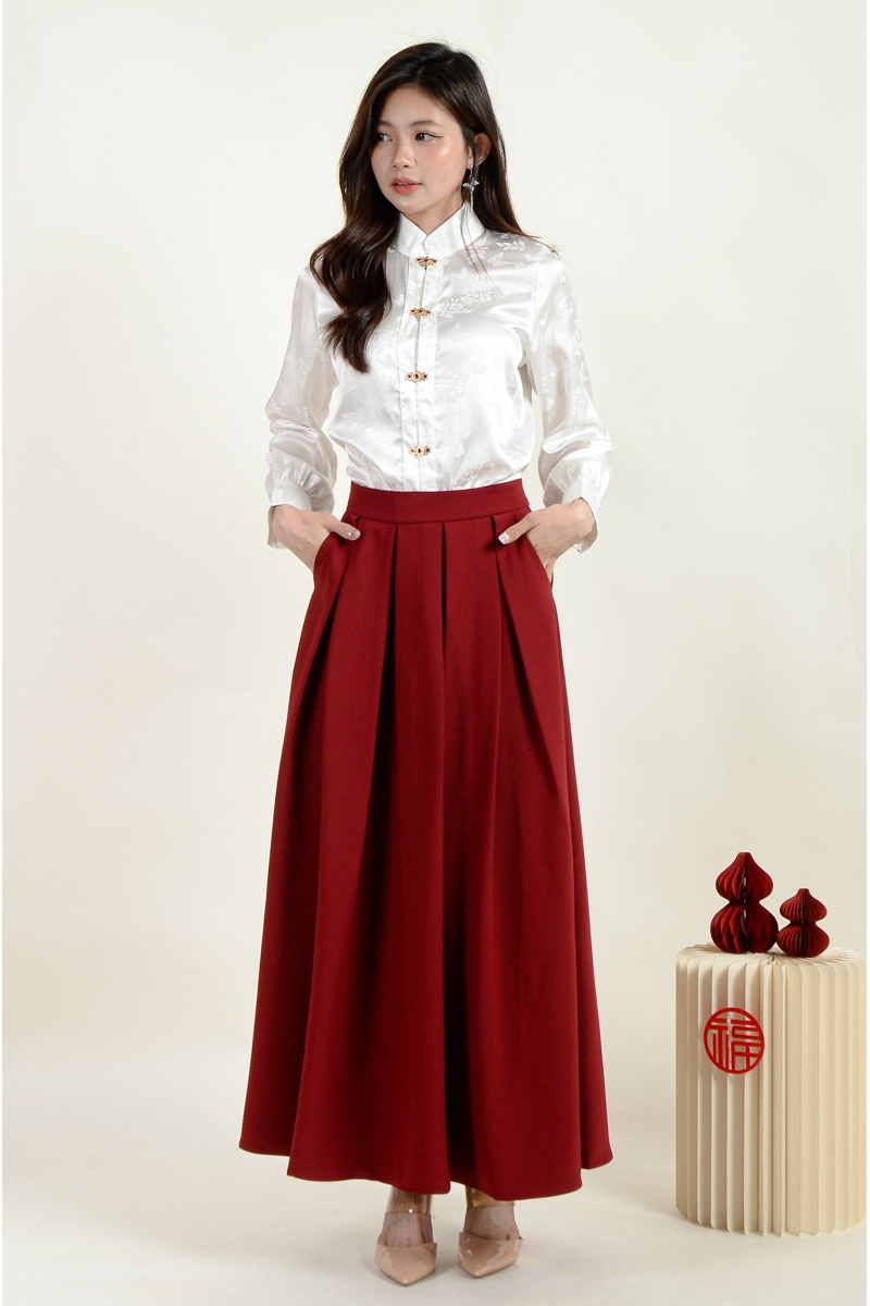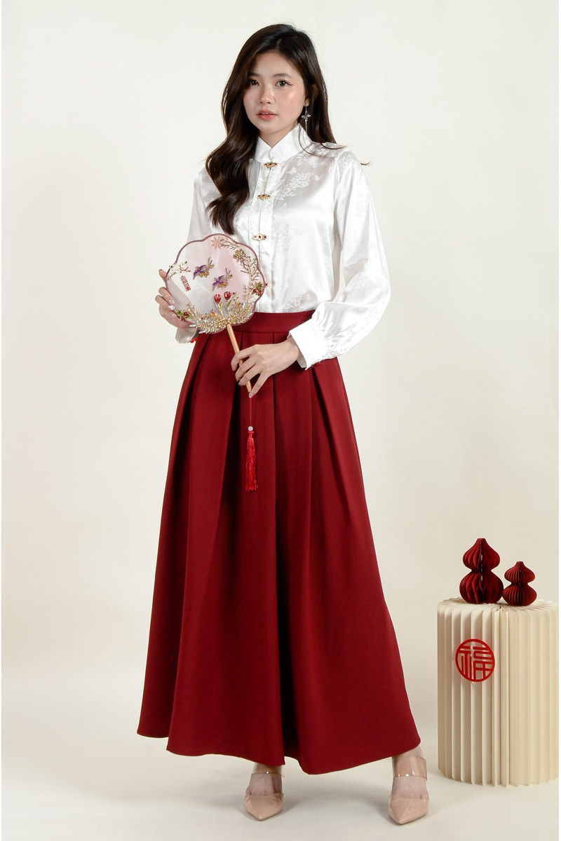 Sasha Cheongsam Top and Pleated Skirt Set - Wine